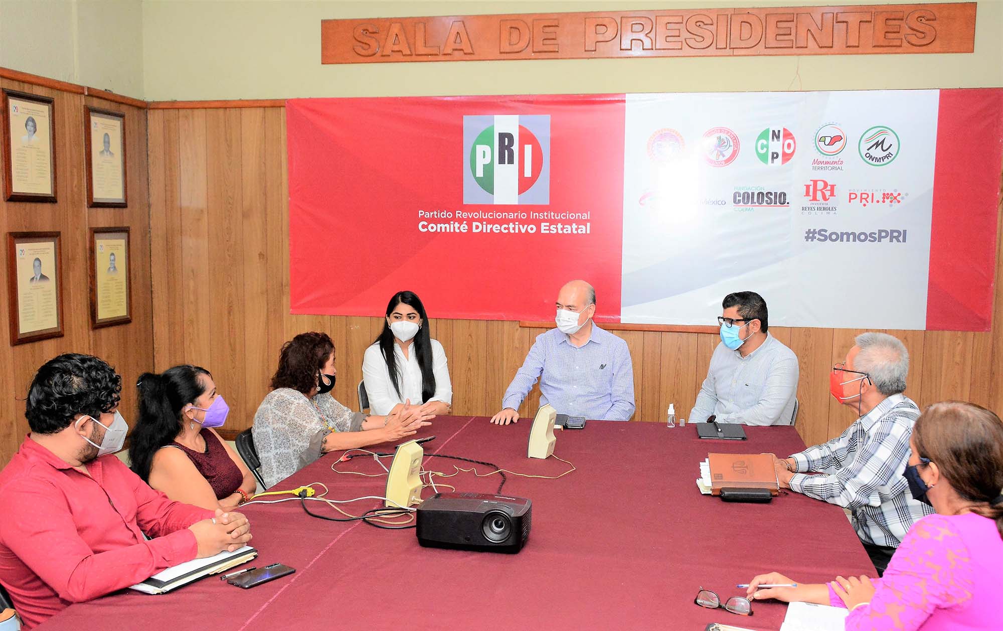 La reunión se desarrollo en la Sala Presidentes de la sede estatal priista, donde Arnoldo Ochoa estuvo acompañado por la Secretaria general, Betzaida Pinzón Carreto y el Secretario de Acción Electoral, Luis Alberto Vuelvas Preciado