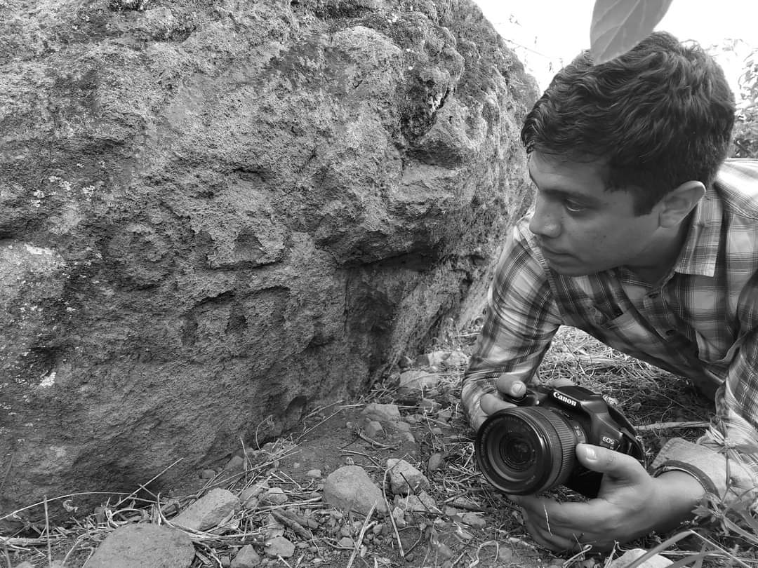 Después de cruzar algunas zacateras y ríos, pudimos ver entre la maleza una piedra rojiza que sobresalía de un cúmulo de tierra y otros monolitos. A simple vista parece ser tan sólo otra piedra más, pero pronto, descubriríamos que se trataba de espectacular e indescriptible obra de arte, cuando vimos la singularidad que poseía de entre todas las piedras que habíamos visto.