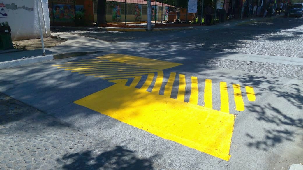 En días pasados durante los recorridos de casa por casa, habitantes de la comunidad solicitaron urgentemente el apoyo de pintura para la señalización de topes y áreas peatonales que presenta un riesgo para todos los que circulan o cruzan la calle.