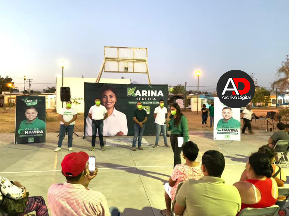 Karina Heredia invitó a votar por ella este 6 de junio, así como por los candidatos del PVEM, Agustín Morales Anguiano (diputación federal 1), Virgilio Mendoza Amezcua (gobernador), Claudia Macías Hermosillo (diputación local 4, Carlos Antonio Chavira George (diputación local 5), Gloria Cortés Sandoval (diputación local 7) y Raquel Rodríguez Mora (diputación local 8).