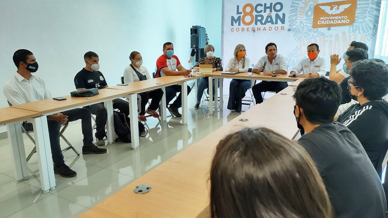 El candidato de Movimiento Ciudadano al Gobierno del Estado, Locho Morán, en una reunión que sostuvo con integrantes de la Asociación para el Desarrollo del Deporte Colimense A. C., se comprometió en restructurar todo el esquema deportivo estatal para convertir a Colima en el número uno del deporte en el país bajo las siguientes premisas: dignificar los sueldos, certeza laboral, priorizar talentos locales, mejorar la infraestructura deportiva, construir un centro de alto rendimiento, fogueo local de los atletas y reactivar los inter-escolares.