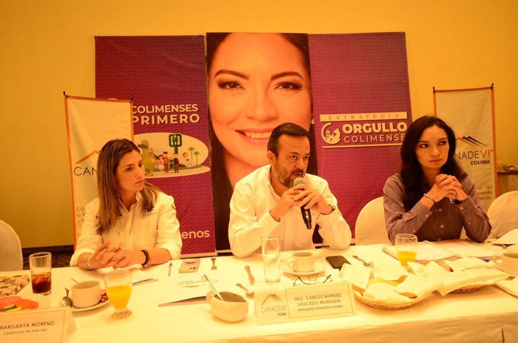 Margarita Moreno, candidata de la coalición “Va por Colima” a la alcaldía capitalina, aseguró que en su administración hará equipo con los desarrolladores de vivienda interesados en invertir en el municipio, para garantizar que cuenten con facilidades en la ejecución de sus proyectos, promoviéndose desarrollos habitacionales ordenados, con el estricto cumplimiento a la ley, y que representen una verdadera alternativa para que las familias mejoren su calidad de vida.