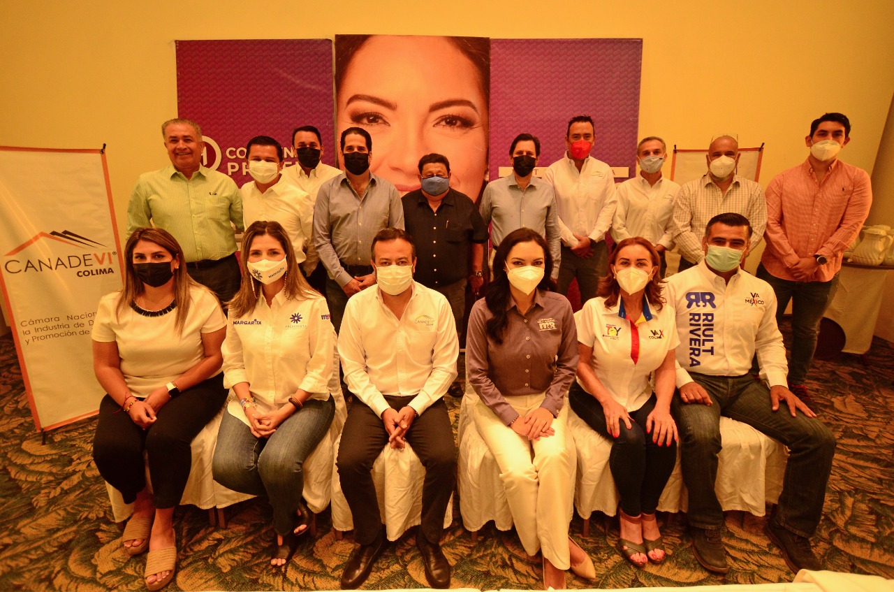 “Estoy convencida que la sociedad y el gobierno juntos podemos hacer grandes cosas. La importancia de este sector no es sólo por sus números, sino porque también, con su trabajo, pueden transformar las condiciones de vida de muchos colimenses”, expresó la candidata en reunión de trabajo con integrantes de la Cámara Nacional de Desarrolladores de Vivienda (Canadevi), encabezados por su presidente, Carlos Manuel Saucedo Munguía y estando presente la candidata a gobernador, Mely Romero Celis, el candidato a diputado federal por el primer distrito, Riult Rivera y Tey Gutiérrez, candidata a presidenta municipal de Villa de Álvarez.