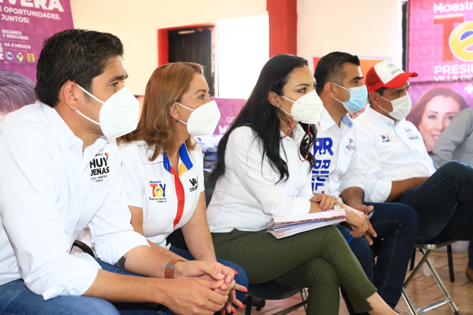 En algunas reuniones se hicieron acompañar de los candidatos a las diputaciones, Tere Guerrero del V Distrito, Miguel Ángel Galindo del Distrito IVy Chuy Dueñas por el VII.