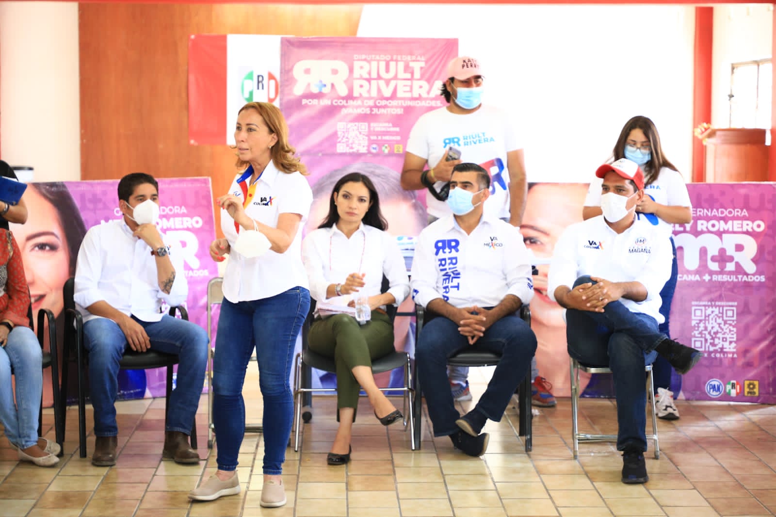 Tey Gutierrez candidata de la coalición Va X Colima a la Presidencia Municipal de La Villa, estuvo junto Mely Romero candidata a la Gubernatura del Estado y el candidato a Diputado Federal, Riult Rivera en diversos eventos en el Municipio.