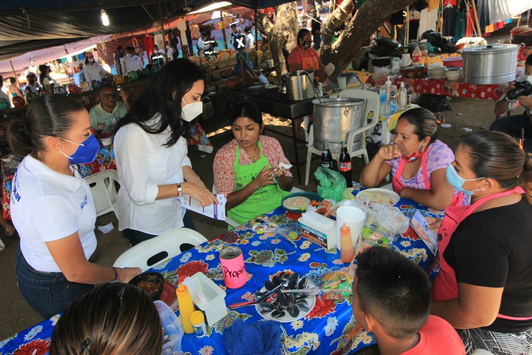 Previo a un recorrido por el tianguis de Santiago, en este Puerto, Mely Romero lamentó también los graves problemas de movilidad generados por las deficientes vialidades de acceso al Puerto.