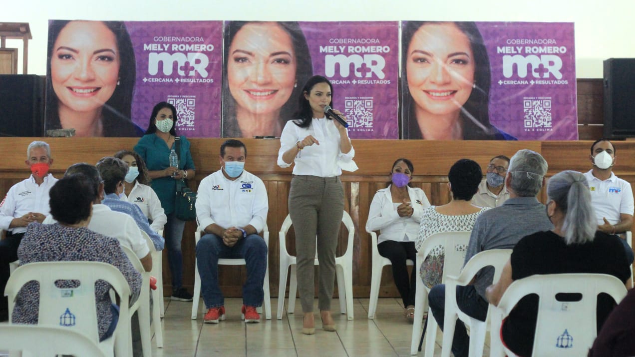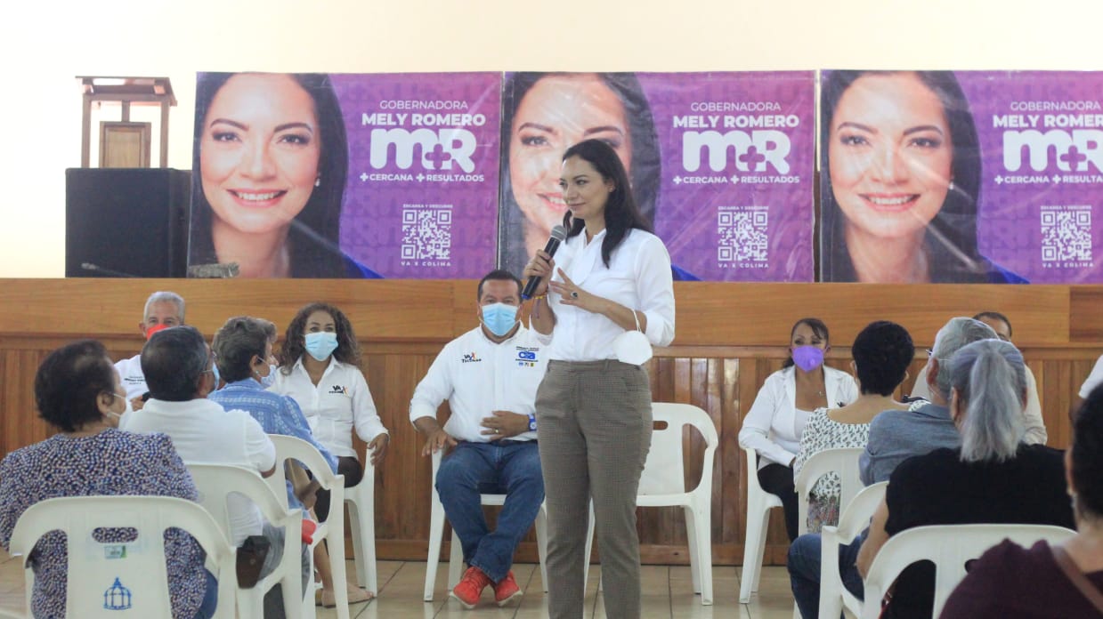 Tecomán, Col. 4 de mayo de 2021.- La abanderada de la Coalición “Va por Colima” al Gobierno del Estado, Mely Romero Celis, tras reunirse con pensionados y jubilados de Tecomán y realizar un recorrido por colonias de ese municipio, expresó que su gobierno no eliminará ni apoyos ni pensiones, como les ha amenazado Morena a adultos mayores si ella gana la gubernatura.