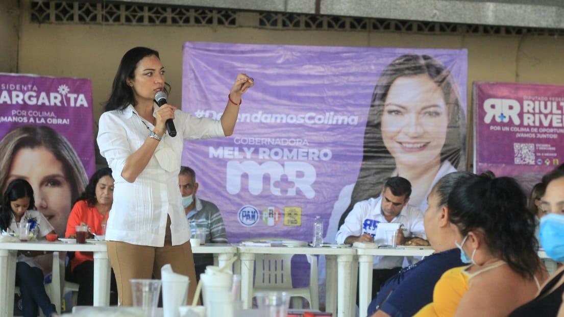 Tras esa reunión, Mely Romero acompañó a la candidata a la presidencia municipal de Colima, Margarita Moreno González, durante un encuentro con vecinos de la Colonia Popular. Ahí se comprometieron a trabajar en equipo para mejorar la seguridad en los barrios y colonias de la capital.
