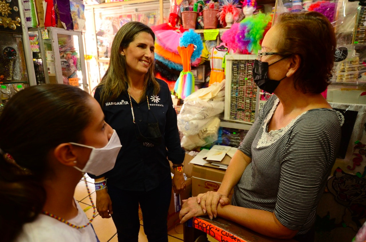 Margarita Moreno destacó que urge reactivar la economía, y que como presidenta municipal, impulsará programas de apoyo a los pequeños comerciantes para que puedan fortalecer sus negocios.
