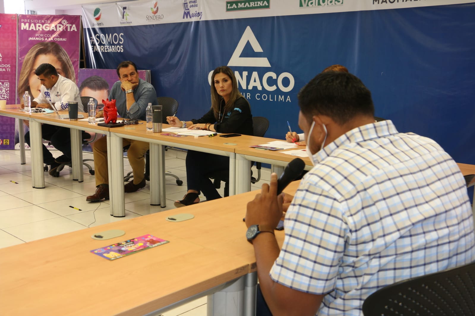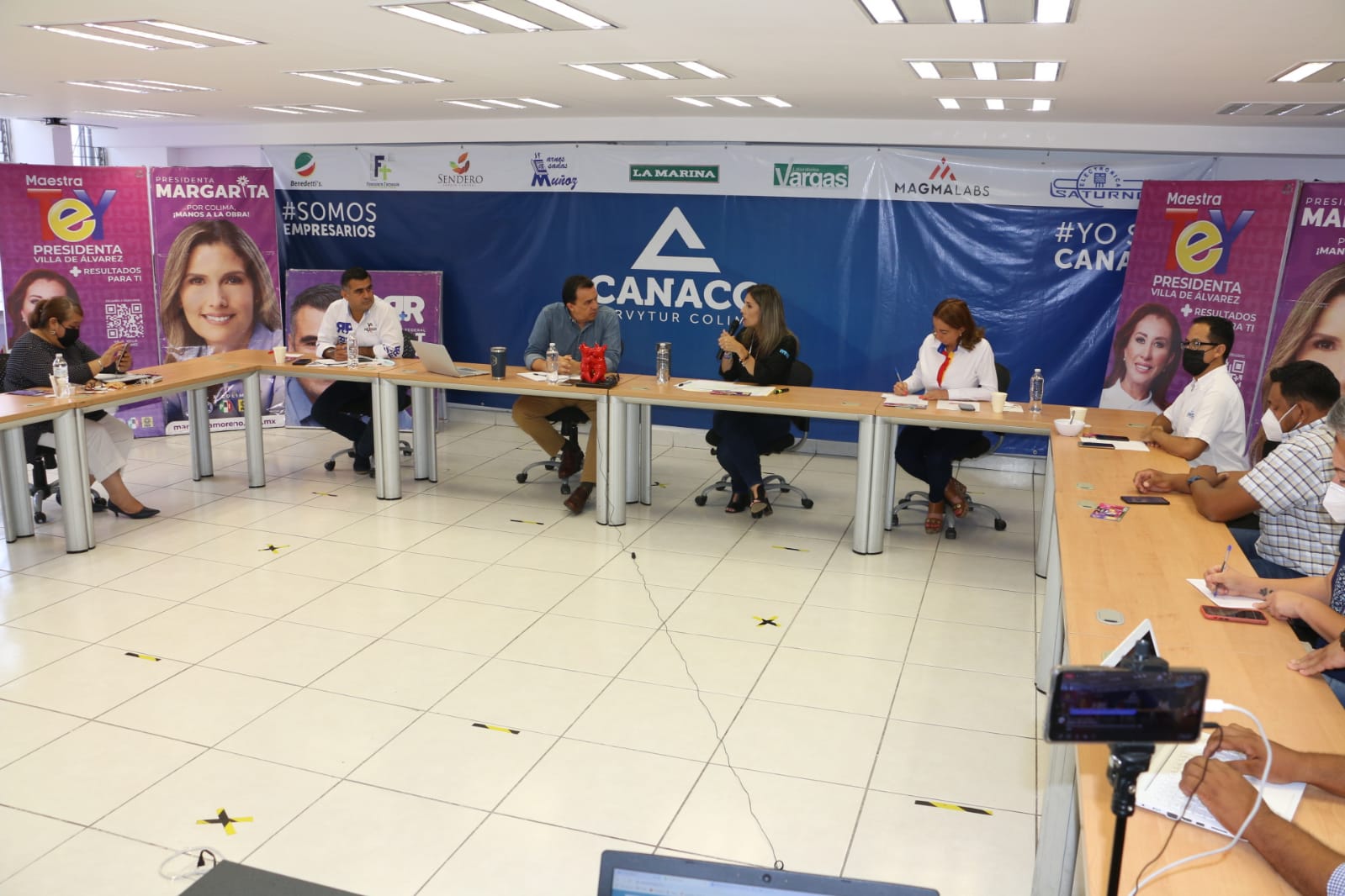 En reunión de trabajo con empresarios integrantes de la Canaco Servtur, encabezados por su presidente, Luis Hurtado Anguiano, la candidata presentó su eje: “Colima Próspero”, en el que se contemplan acciones de apoyo a las empresas locales, la reducción de trámites en los procesos ante el Ayuntamiento a través de herramientas tecnológicas, así como proyectos que incentiven la inversión, en todos los niveles.