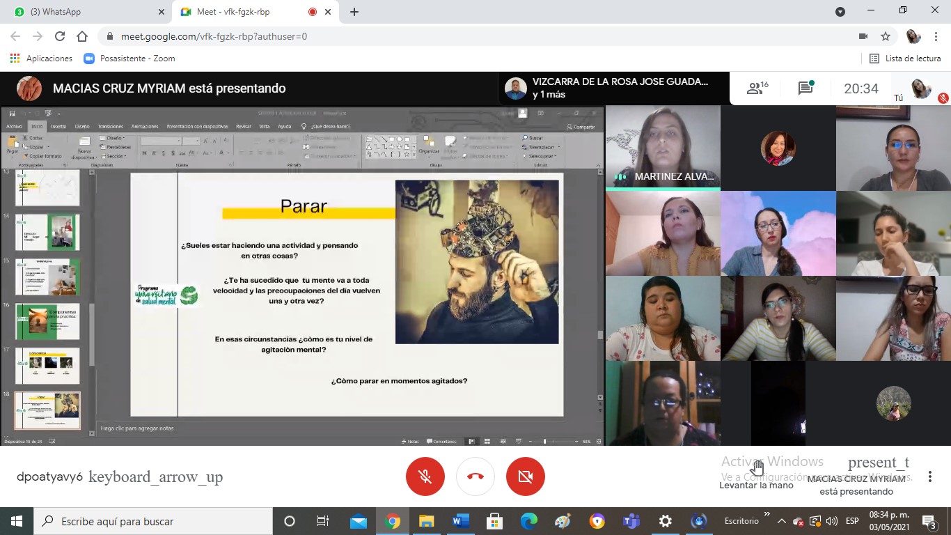 Con sesiones virtuales y la participación del personal del área de Desarrollo Humano del CEDEFU, docentes de esta casa de estudios se dieron cita para conocer un poco más qué son las competencias emocionales a través de la atención plena y el bienestar emocional.
