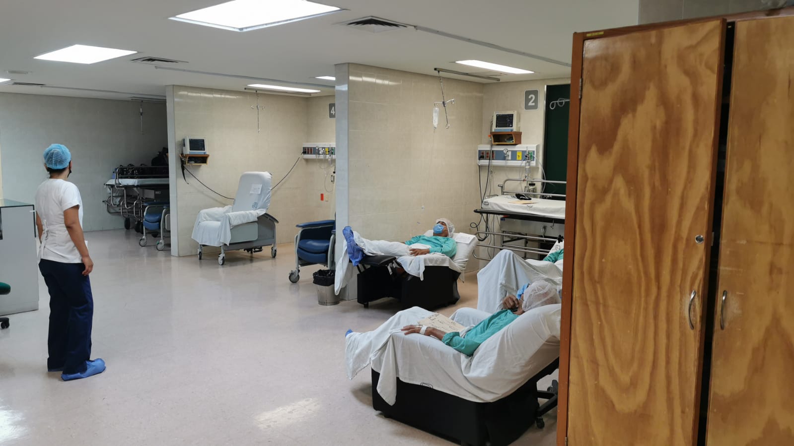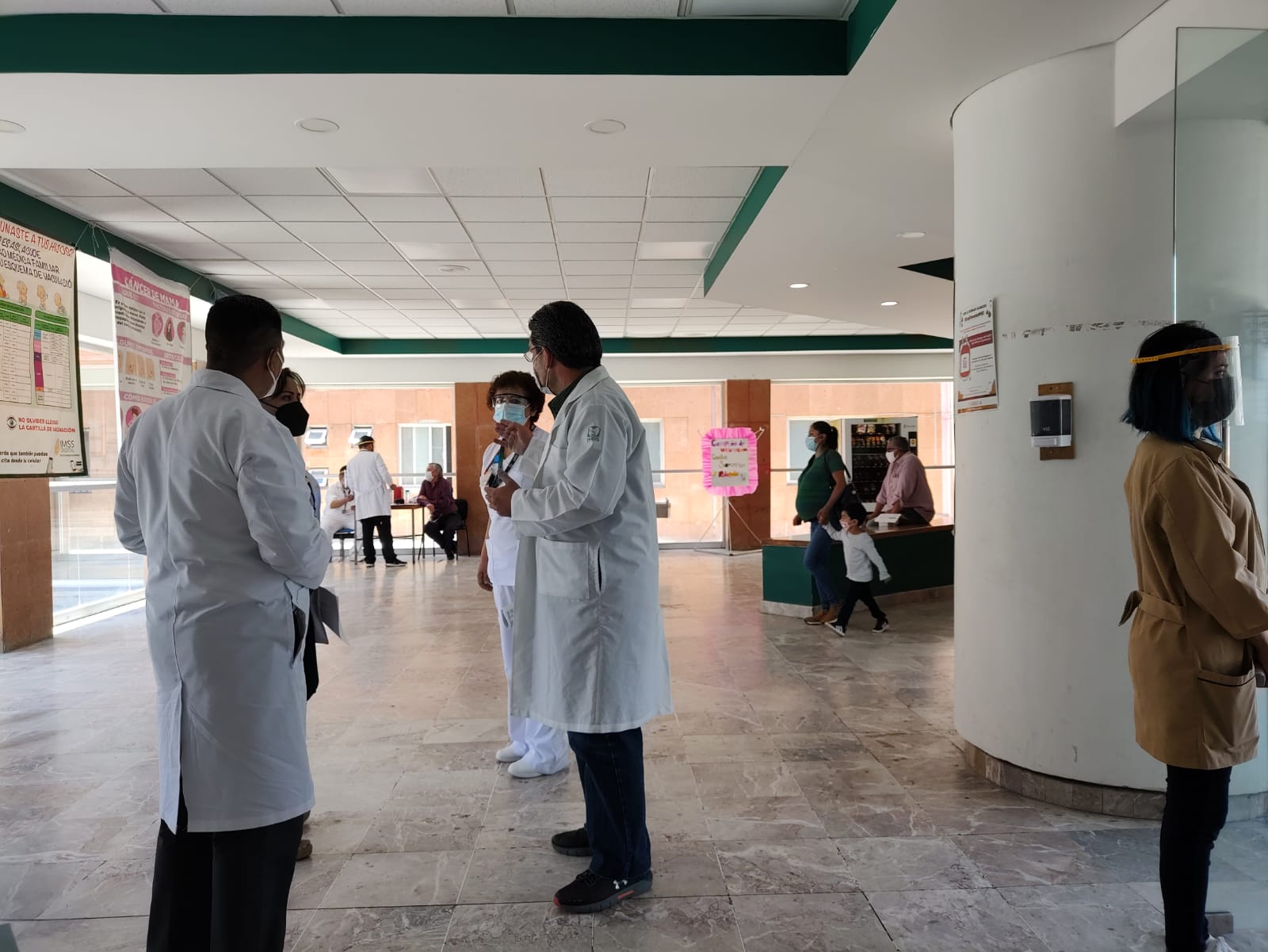 En las unidades médicas del IMSS se aplican protocolos de seguridad e higiene en beneficio del personal y los derechohabientes: toma de temperatura al ingreso a las unidades, realización de cuestionario de presencia de síntomas, limitación de aforo en salas de espera, entre otros.
