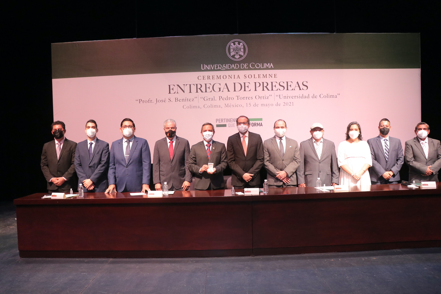 En dos ceremonias complementarias, para guardar la sana distancia, la Universidad de Colima entregó este sábado en el Teatro Universitario, las preseas “Prof. José S. Benítez”, “Gral. Pedro Torres Ortiz” y “Universidad de Colima”, a las y los trabajadores universitarios que cumplieron 15, 20 y 25 años de servicio a la institución, respectivamente, además de felicitar y premiar a las y los mejores docentes de bachillerato y licenciatura.