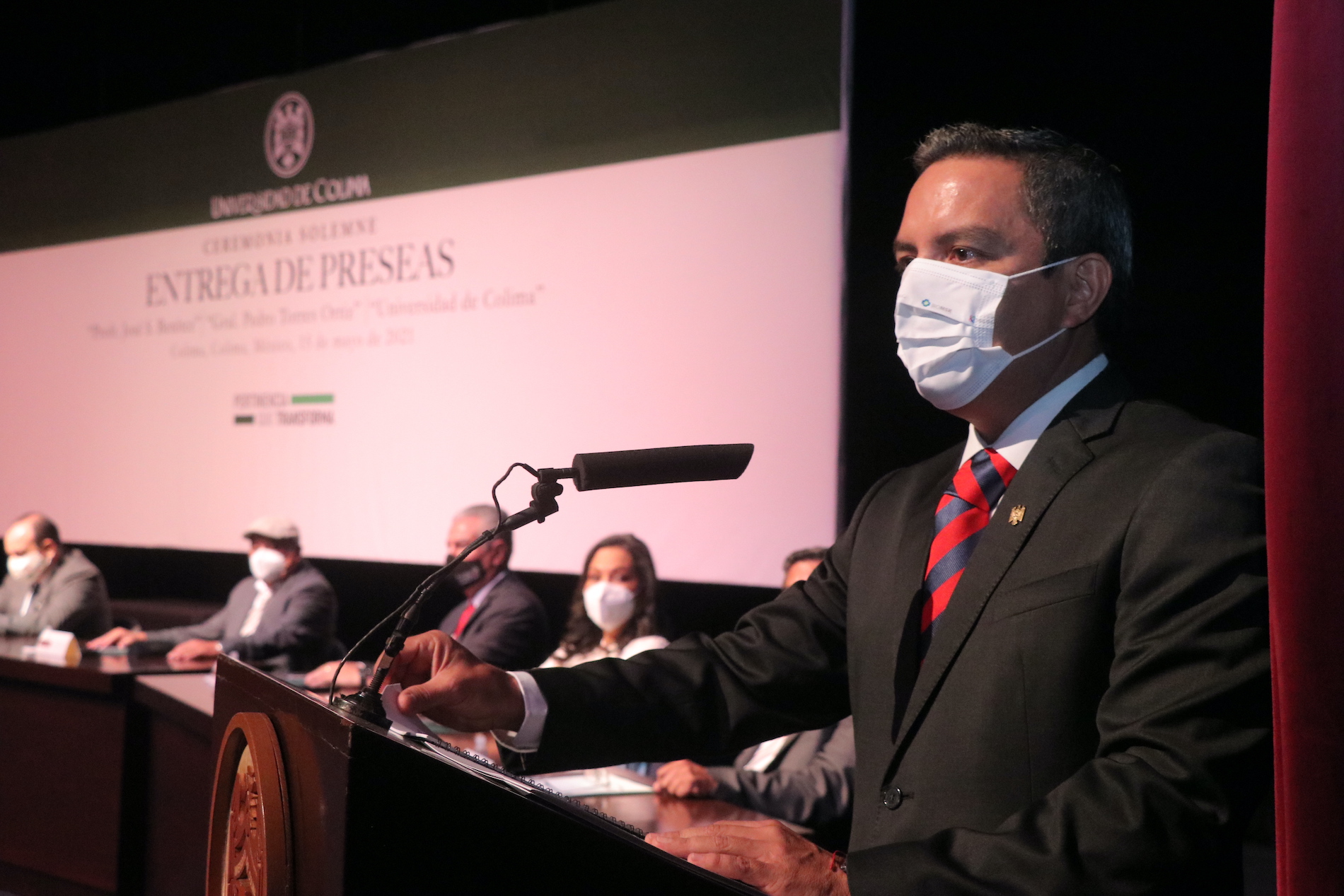 También estuvieron Joel Nino, secretario general de la UdeC; Enrique Alejandro Palomino, secretario general del SUTUC; Camilo Alejandro García, presidente de la Federación de Estudiantes Colimenses; Sergio Wong, presidente de la FEUC; Marcelino Bazán, presidente de la Asociación de Jubilados y Pensionados de la UdeC y Ana Azucena Evangelista, presidenta de la ACU.