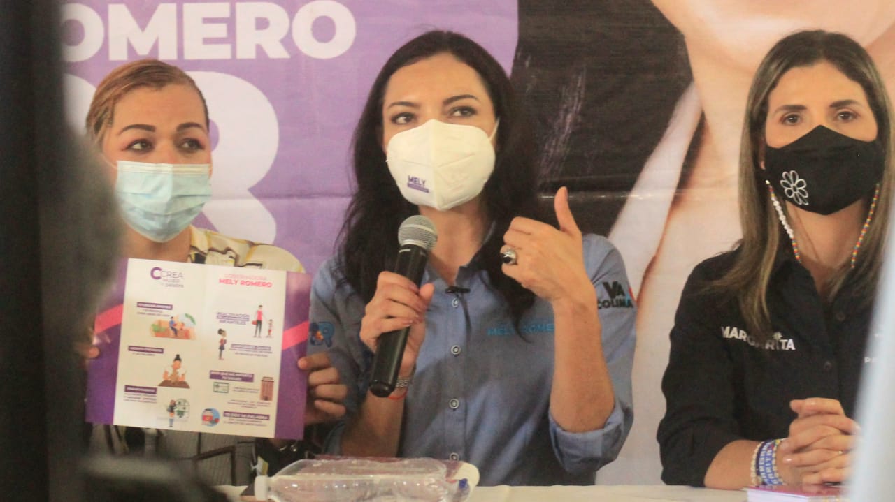 Acompañada por Margarita Moreno González y Ruilt Rivera, candidatos a presidenta municipal de Colima y a diputado federal, respectivamente, Romero Celis sostuvo que sólo hay dos opciones para esta elección al Gobierno del Estado, cuya competencia está entre dos mujeres: una que es un cambio para retroceder, perdiendo programas, presupuestos y secretarías de gobierno, y la otra opción que representa la Coalición “Va por Colima”.
