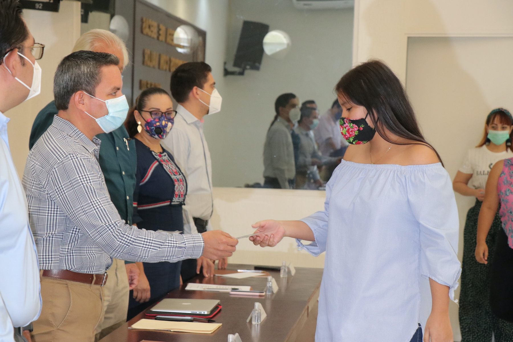 En su momento, el estudiante de la licenciatura en Publicidad y Relaciones Públicas, Ian Gabriel Santiago Posadas dijo en nombre propio y de sus compañeros beneficiados, que desde el inicio de la pandemia por COVID 19 se han vivido tiempos difíciles; “éste es el momento en que nuestra generación debe reconocer y retomar sus valores, y ser creativos e innovadores para ayudar a nuestras familias, autoridades de salud y educativas, de forma solidaria y responsable”.