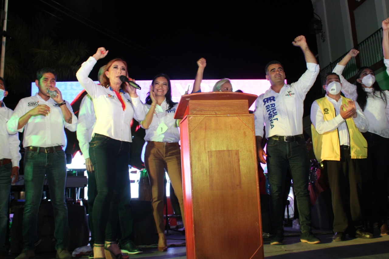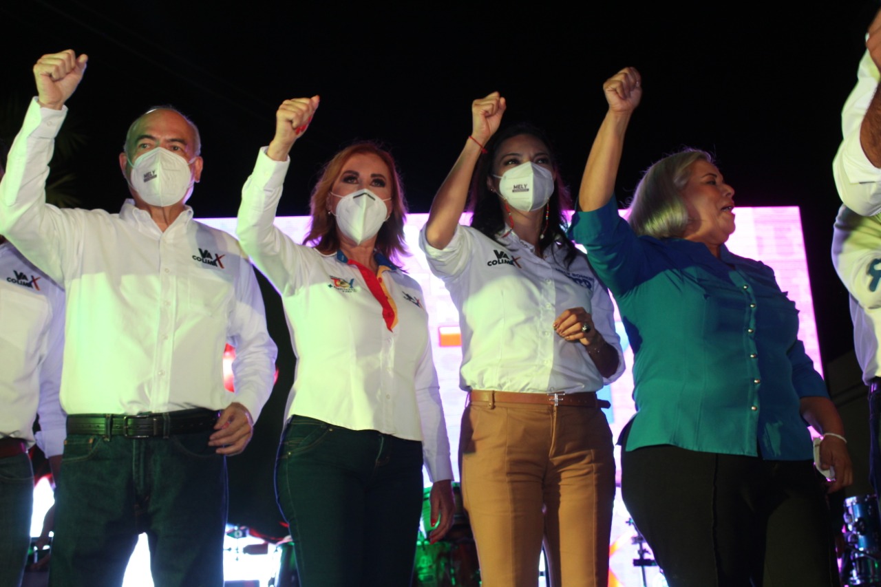 • La candidata de la coalición Va por Colima realizó su cierre de campaña en el jardín principal de Villa de Álvarez, acompañada por la candidata a la gubernatura y los candidatos a diputados federales y locales.