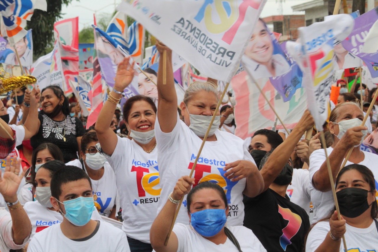 “no hay duda de que vamos a ganar, no hay duda del respaldo de la gente en la colonia y no hay duda de que el 6 de junio saldremos a votar por esta coalición en Villa de Álvarez, Mely Romero, Riult Rivera, Miguel Ángel Galindo, Tere Guerrero, Chuy Dueñas, Héctor Magaña y claro, por su servidora Tey Guétierrez”.