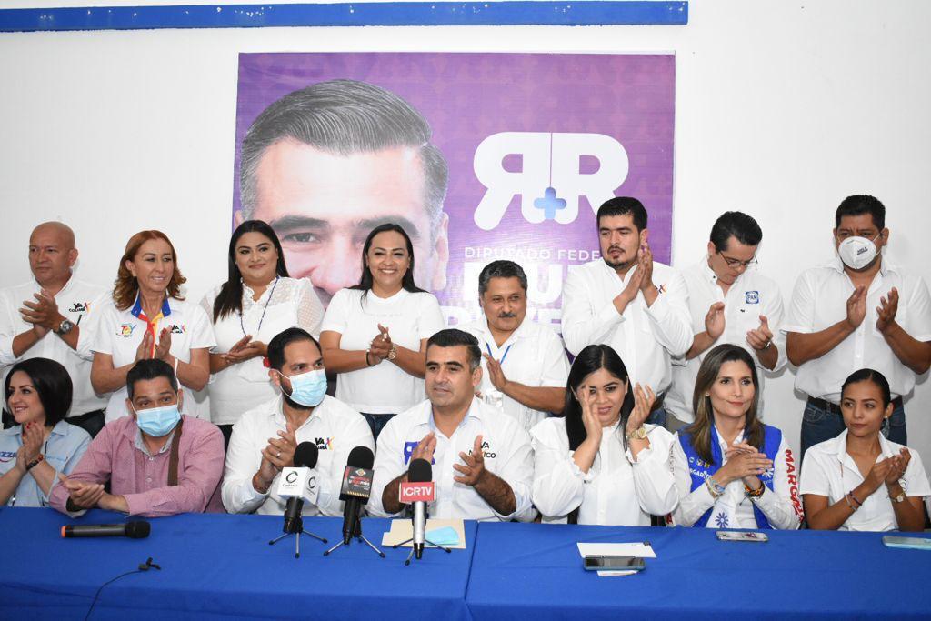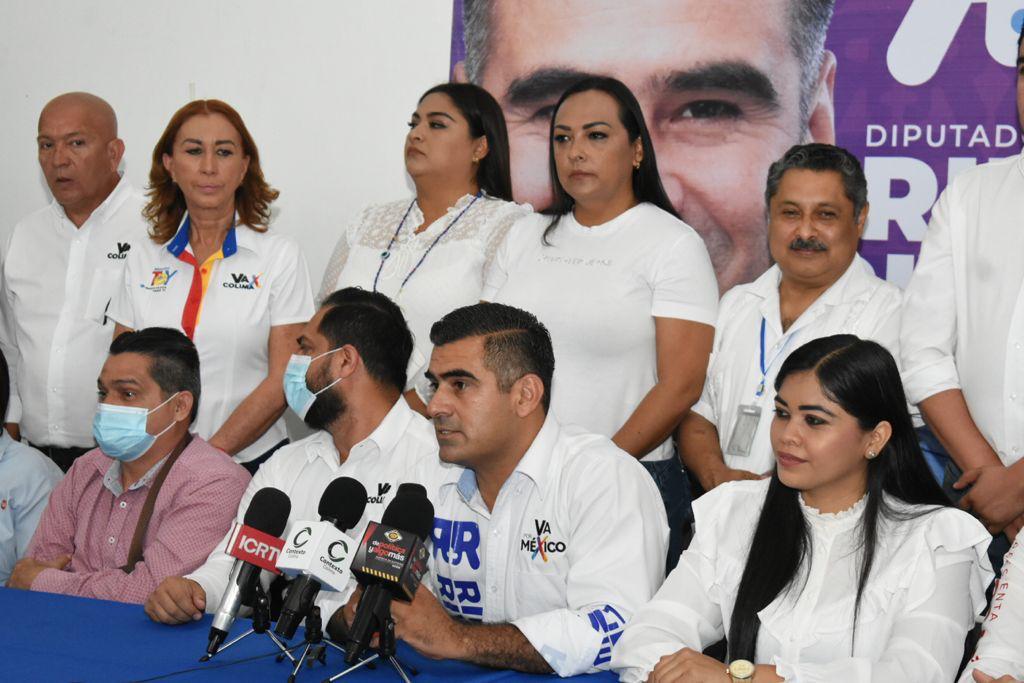 Colima, Colima a 2 de junio del 2021.- En rueda de prensa el Candidato para Diputado Federal Riult Rivera convocó a las y los candidatos de la Coalición “Va por Colima” para dar su mensaje de agradecimiento y de término de las campañas políticas 2021, las cuales concluyen el día 2 de junio a las 23:59PM, terminando así una etapa del proceso electoral y entrando a veda electoral para esperar el día 6 de junio y celebrar la elección.