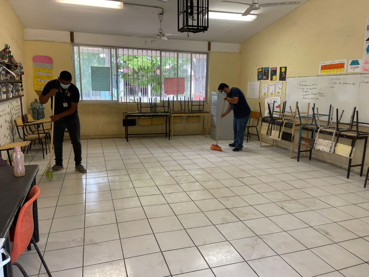 *Utilizando diversos enseres de limpieza y desinfectante, el personal de ambos institutos acudió a las escueles y otros espacios el pasado 4 y 5 de junio para dejar todo listo para el 6 de junio.