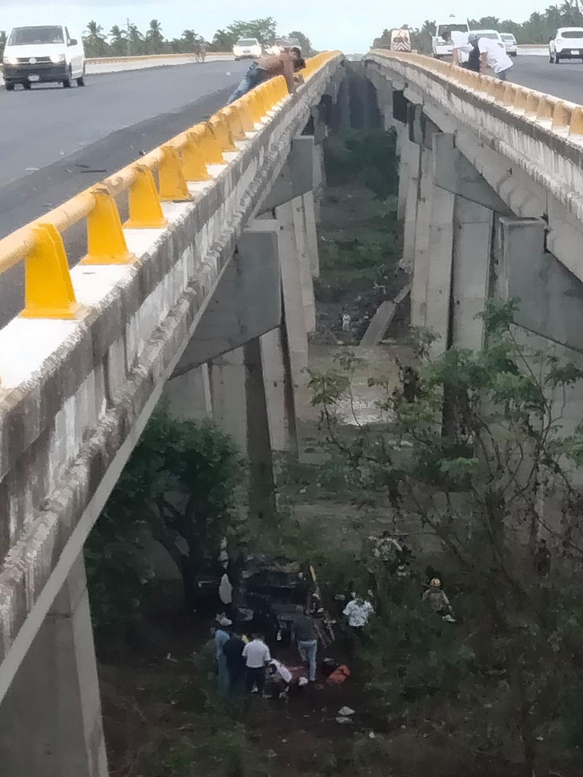 Una camioneta de la Fiscalía General del Estado de Colima cayó al Río Armería desde el puente de la autopista.