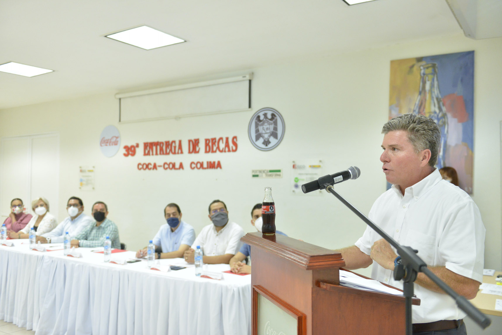 En la ceremonia de entrega número 39 de las Becas Coca-Cola Colima, realizada de manera presencial en el auditorio de la Embotelladora de Colima, S.A. de C.V., con 21 de los 200 beneficiarios, el rector de la Universidad de Colima, Christian Jorge Torres Ortiz Zermeño aseguró que “acciones como ésta generan en los estudiantes y sus familias una oportunidad para continuar con su formación académica”.