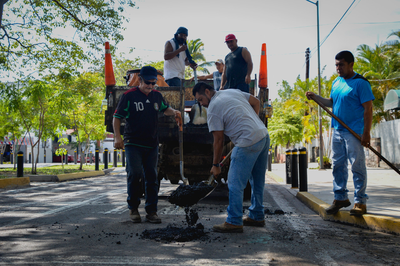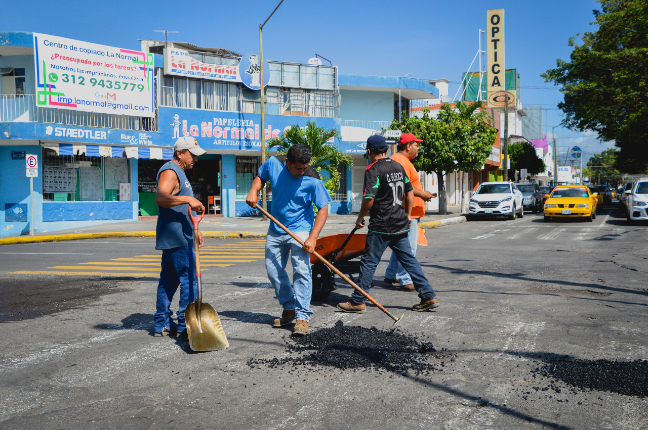 Personal del Ayuntamiento de Colima, trabaja en el bacheo de la ciudad, comenzando por las principales calles y avenidas, las cuales, luego de una evaluación, fueron dañadas por las lluvias de la tormenta tropical “Dolores” y el huracán “Enrique”.