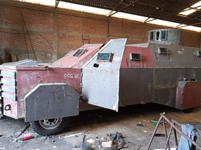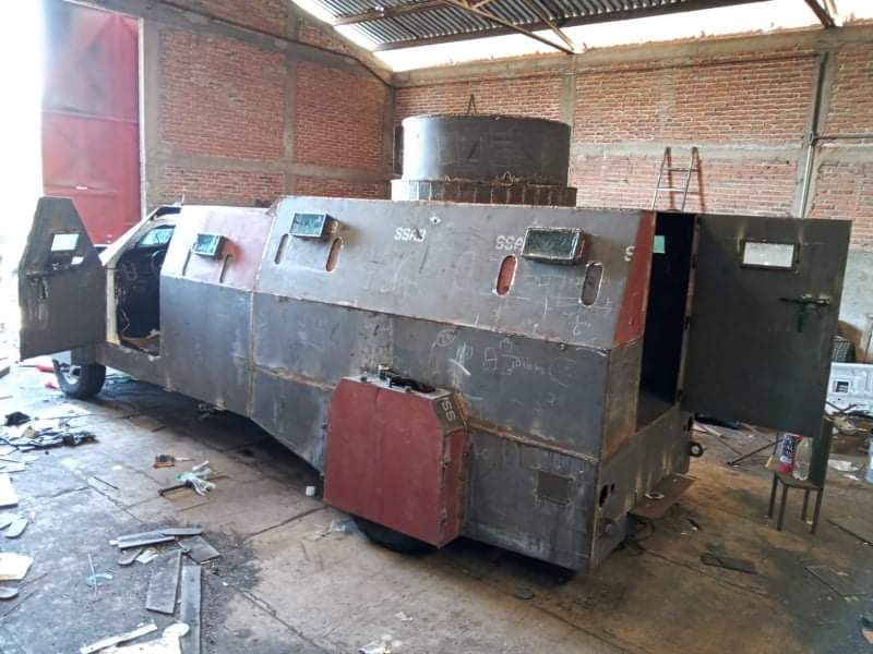 Ahí se localizó una camioneta de tres toneladas modificada como camión blindado, con una torreta para disparar y llantas recubiertas.
