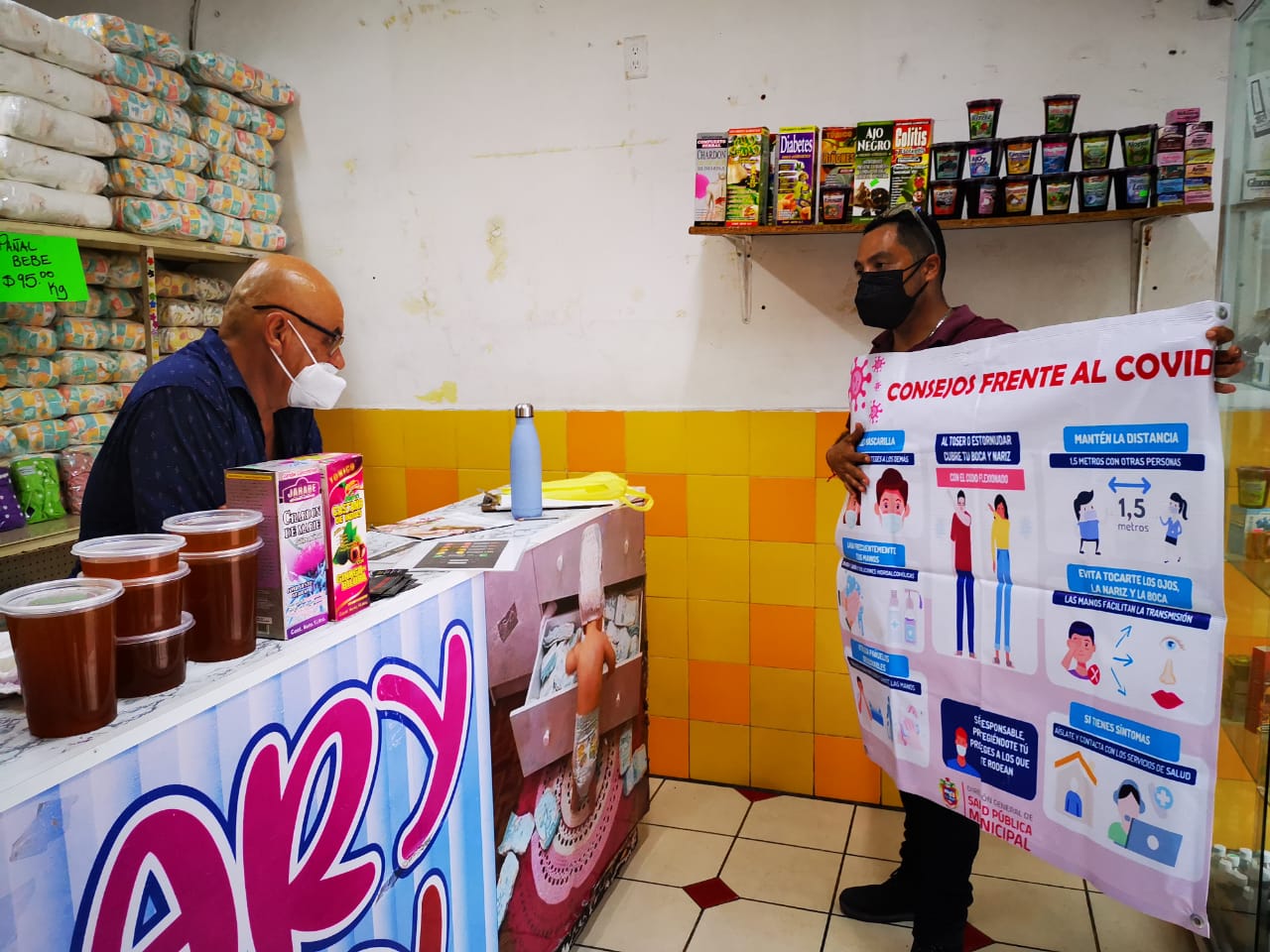 Diariamente se realizan brigadas informativas y de verificación en establecimientos comerciales y centros laborales, a fin de garantizar la aplicación responsable de las medidas preventivas de salud y evitar riesgos de contagio de coronavirus, protegiendo así, la salud de sus clientes y empleados.