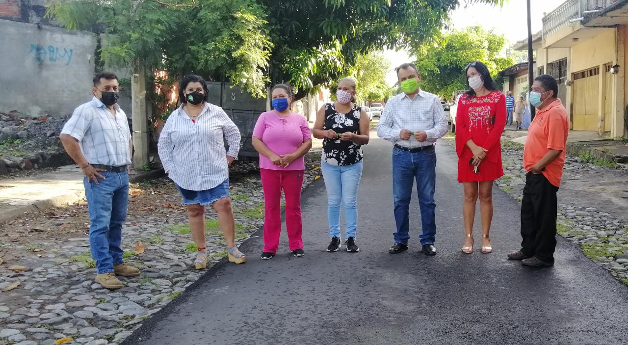 El Presidente Municipal Felipe Cruz entregó este lunes dos obras, de pavimentación de vialidad y banquetas de parque cultural, la primera en la colonia San Isidro y la otra en la colonia Centenario.