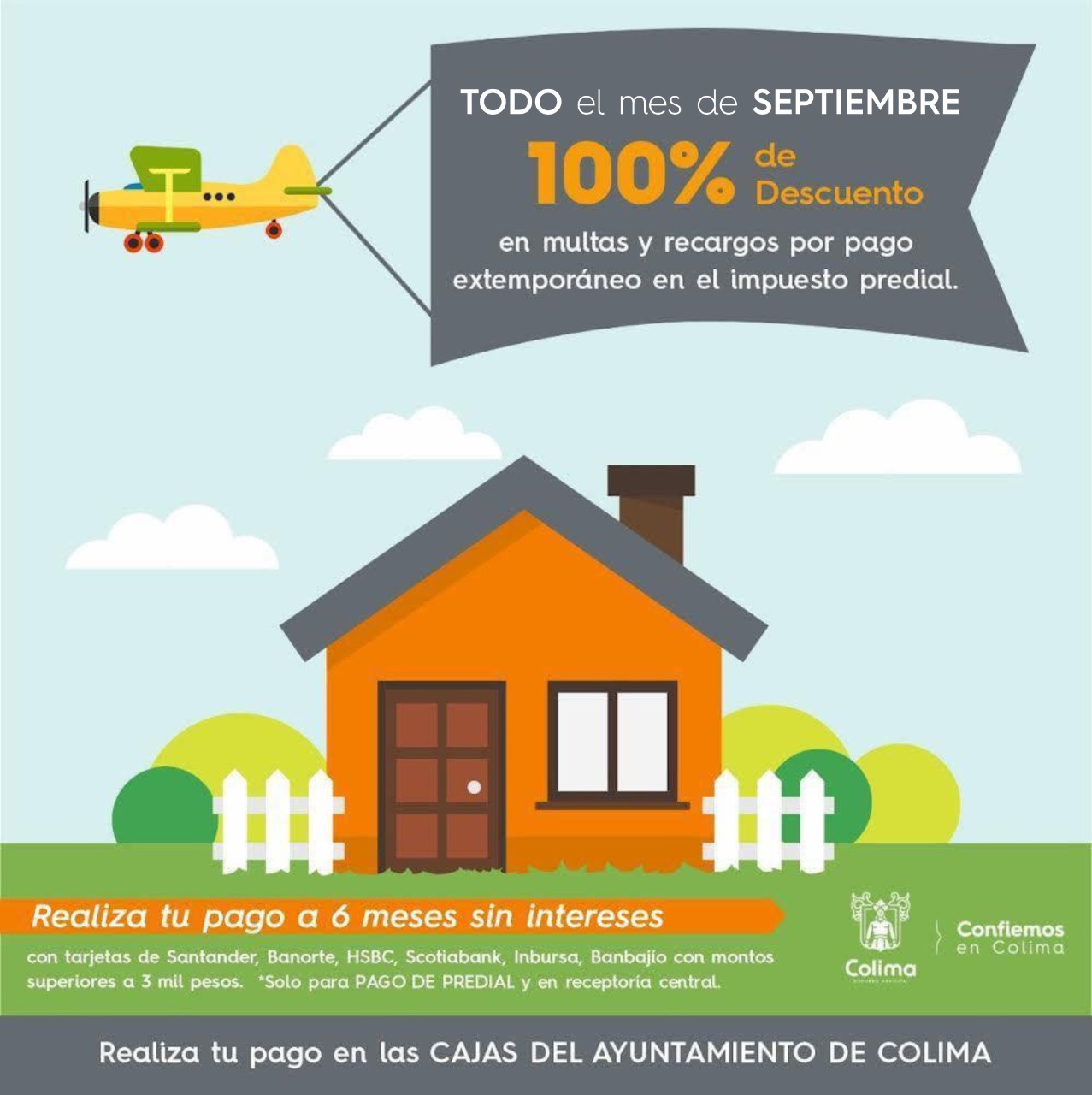 El Ayuntamiento de Colima invita a la ciudadanía a aprovechar el 100% de descuento en multas y recargos en el predial del año 2021 o anteriores; este beneficio estará disponible hasta el 30 de septiembre.