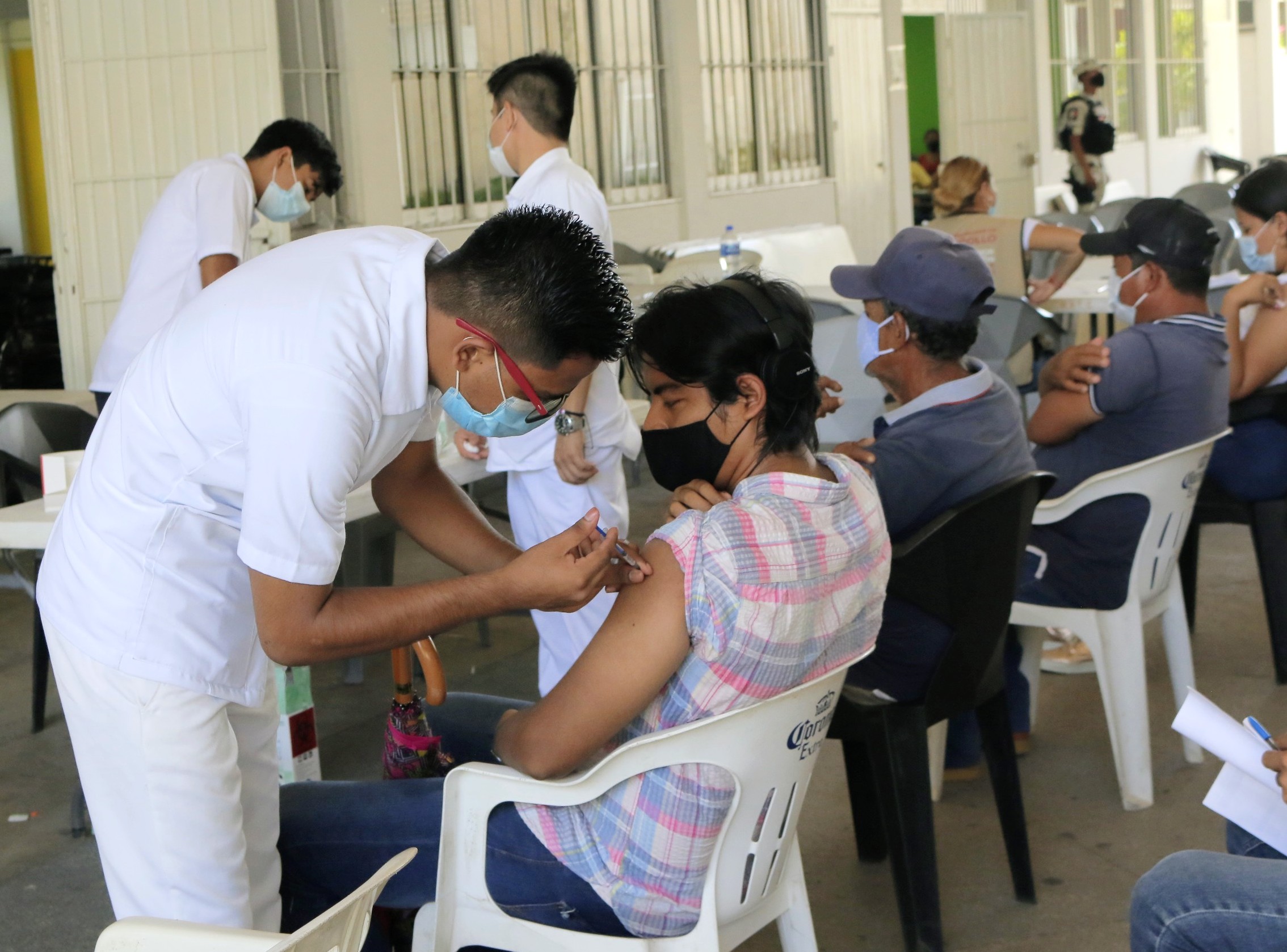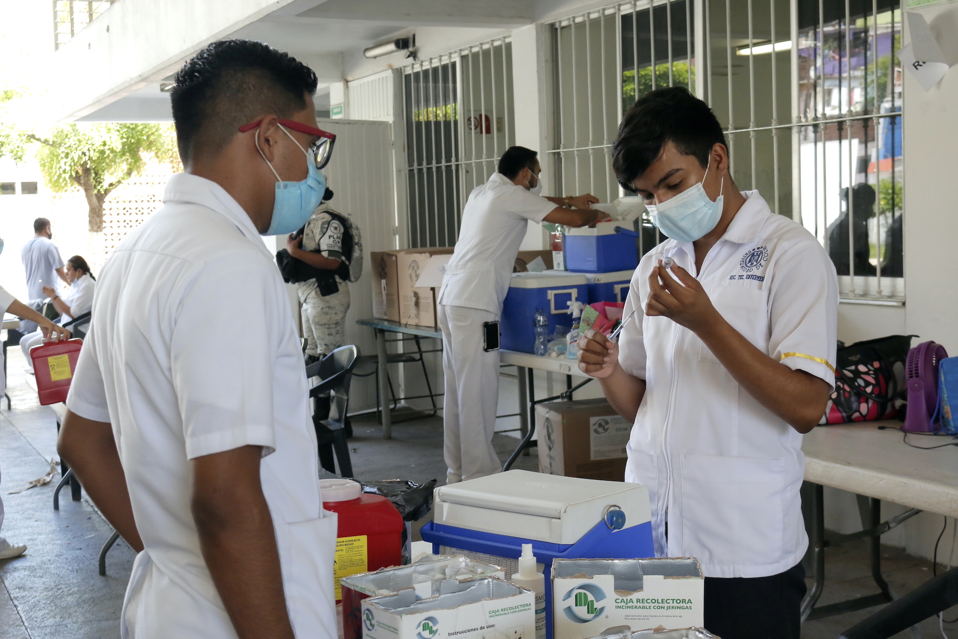 Este domingo, la Universidad de Colima continuó apoyando la estrategia nacional de vacunación anti COVID-19, al prestar las instalaciones del Campus San Pedrito, en la delegación Manzanillo, y facilitar la participación de estudiantes de enfermería. Esta vez se aplicó la segunda dosis de la vacuna Sinovac a personas mayores de 18 años.