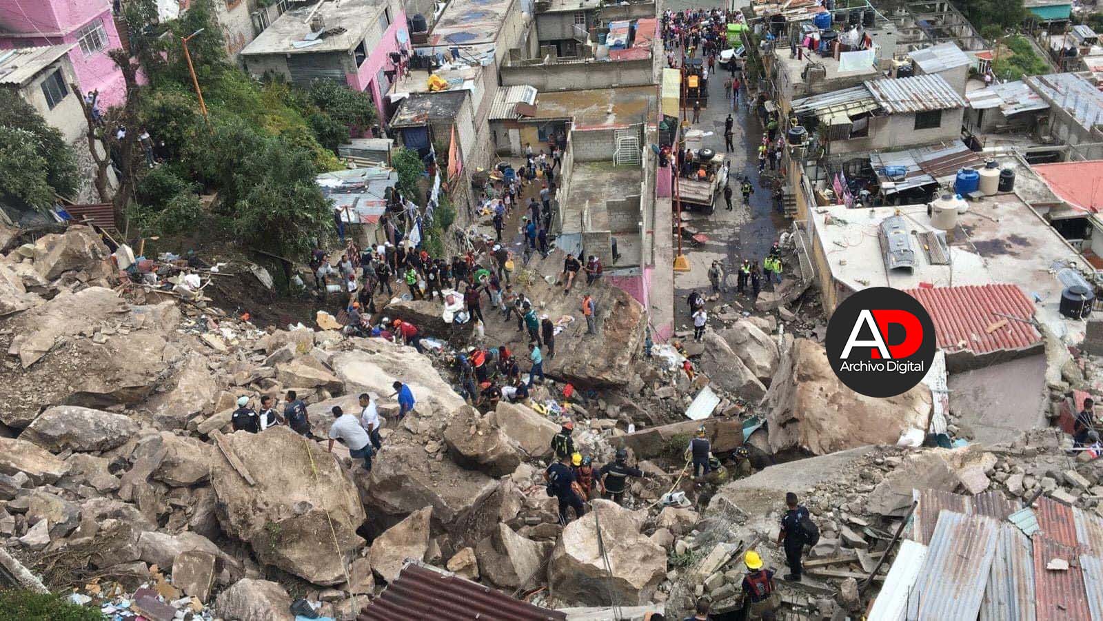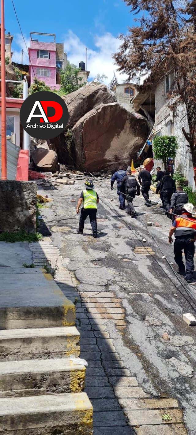 El derrumbe se produjo en la colonia Lázaro Cárdenas segunda sección de Tlalnepantla, Estado de México, sitio a donde se movilizaron servicios de emergencia y de la Guardia Nacional para atender la situación.