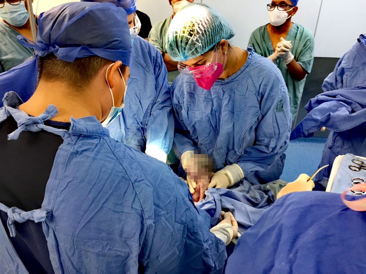 Resaltó que en la cirugía participaron pediatras, ginecólogos, anestesiólogos y cuerpo de Enfermería como uno solo, al tener hasta equipos de cuatro especialistas por cada bebé, para su recepción y cuidados posteriores al parto.