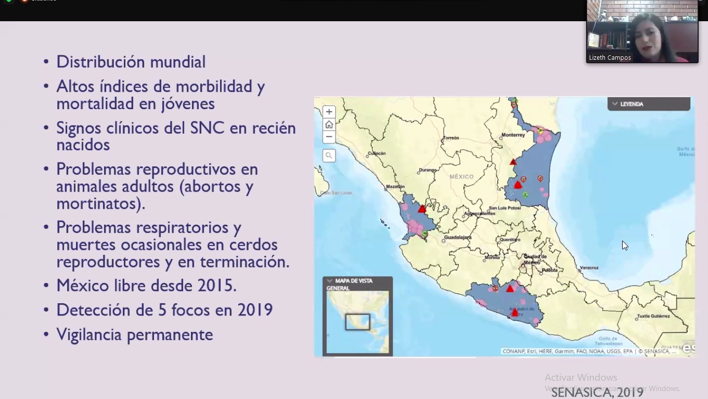 Como parte de las actividades del II Congreso de Producción Porcina que organizó la Facultad de Medicina Veterinaria y Zootecnia (FMVZ) del campus Tecomán de la Universidad de Colima, se realizó la conferencia virtual “Principales enfermedades reproductivas en cerdos”, a cargo de Lizeth Campos Múzquiz, profesora-investigadora de la Universidad Autónoma de Coahuila.