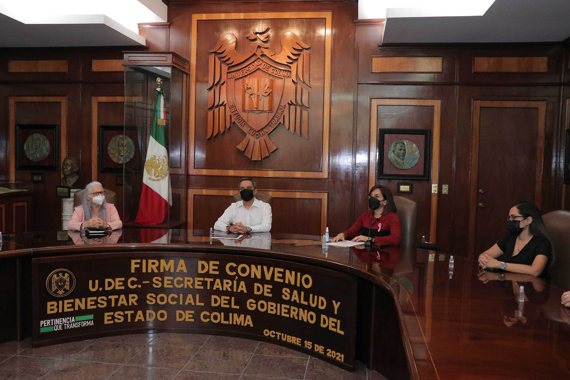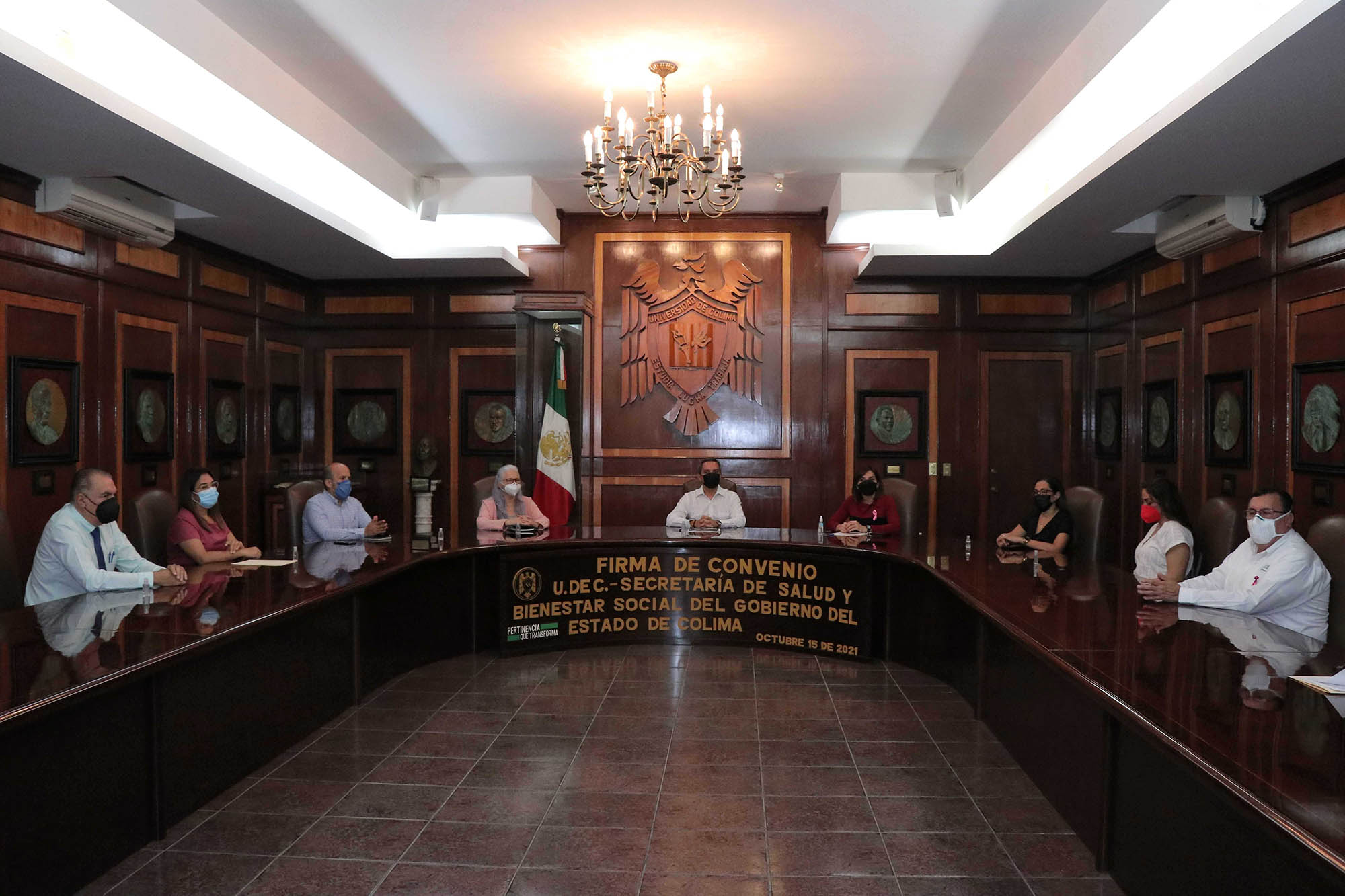 En evento presencial llevado a cabo en la sala de juntas de Rectoría, este viernes firmaron un convenio de colaboración la Universidad de Colima y la Secretaría de Salud y Bienestar Social del Gobierno del Estado, con el cual se busca garantizar la preparación académica del personal médico en formación, así como el beneficio para la sociedad, que contará con servicios de salud de calidad.