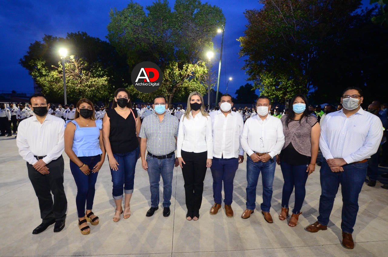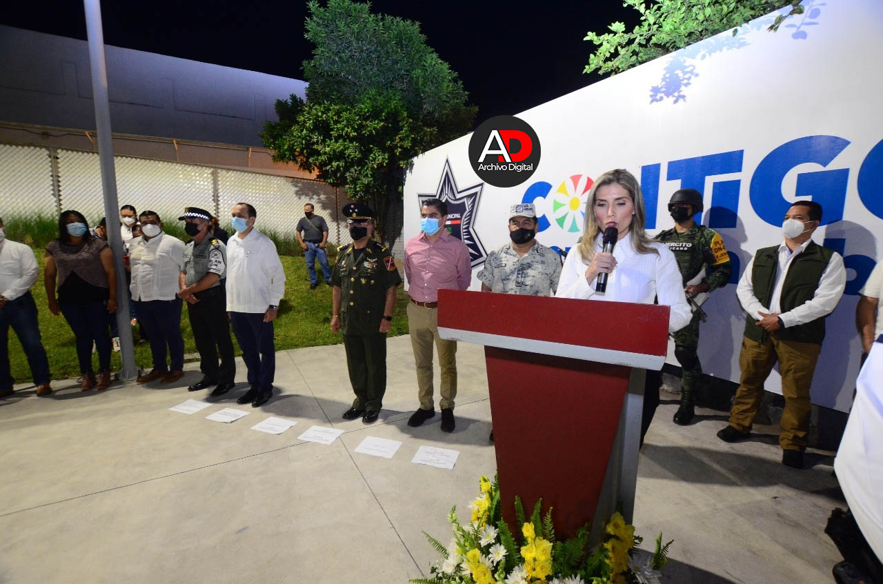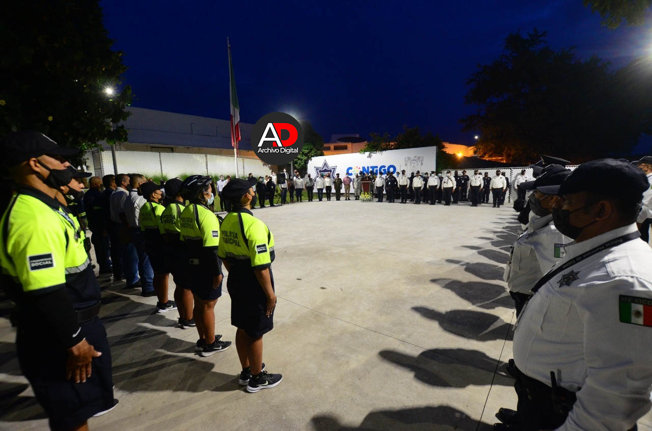 Tras rendir honores a la bandera, Margarita Moreno anunció los tres ejes que dirigen la estrategia municipal de seguridad, los cuales son: Policía contigo, Justicia cívica y la Profesionalización policial.