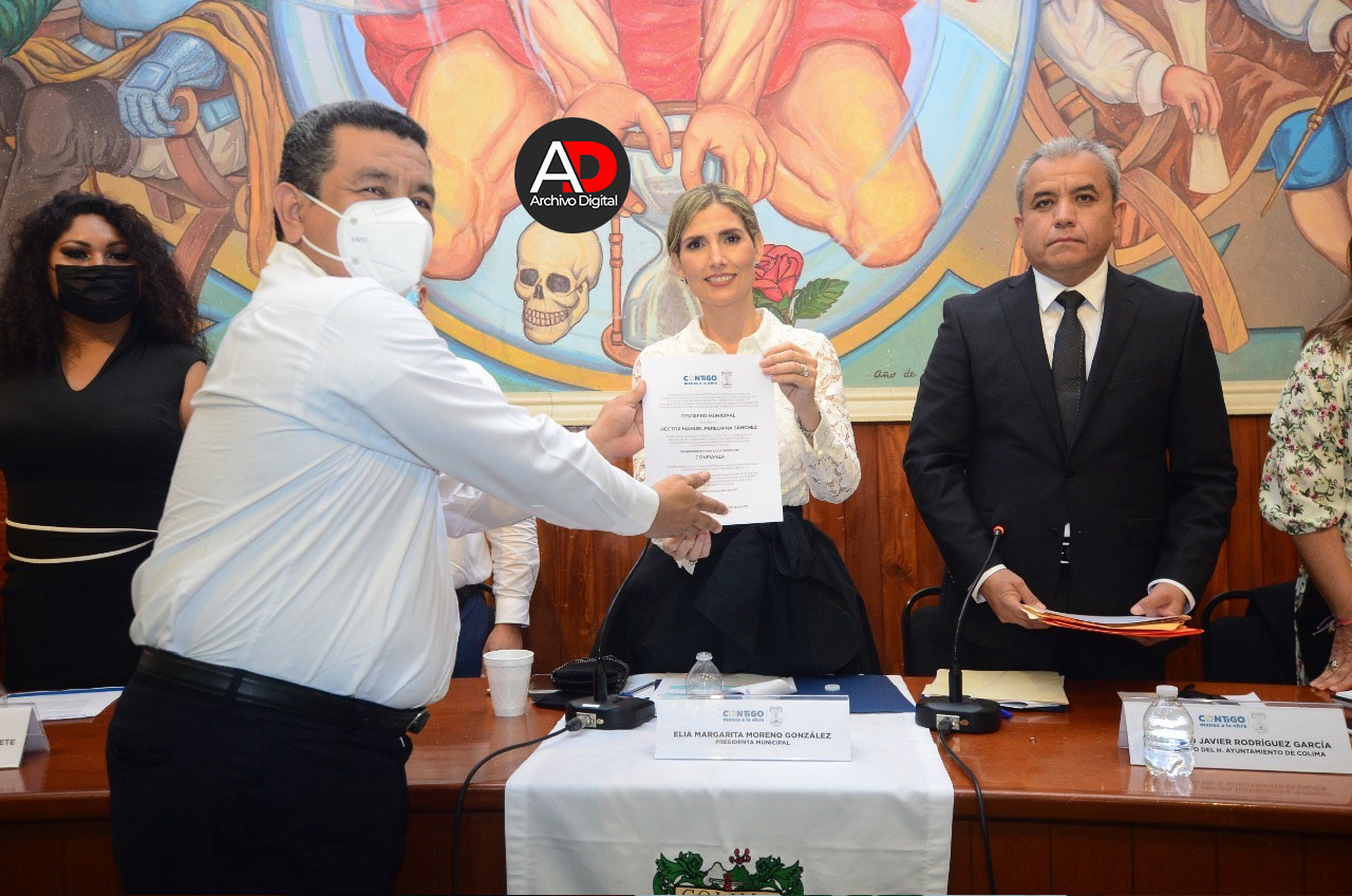 En el área de Tesorería Municipal se hizo el nombramiento de Héctor Manuel Peregrina Sánchez, quien cuenta con estudios de Contaduría Pública y es aspirante al grado de Maestro en Administración por la Universidad de Colima, ejerciendo desde hace 30 años en áreas públicas y del sector privado, destacando la experiencia como tesorero en los Ayuntamientos de Tecomán y Villa de Álvarez.