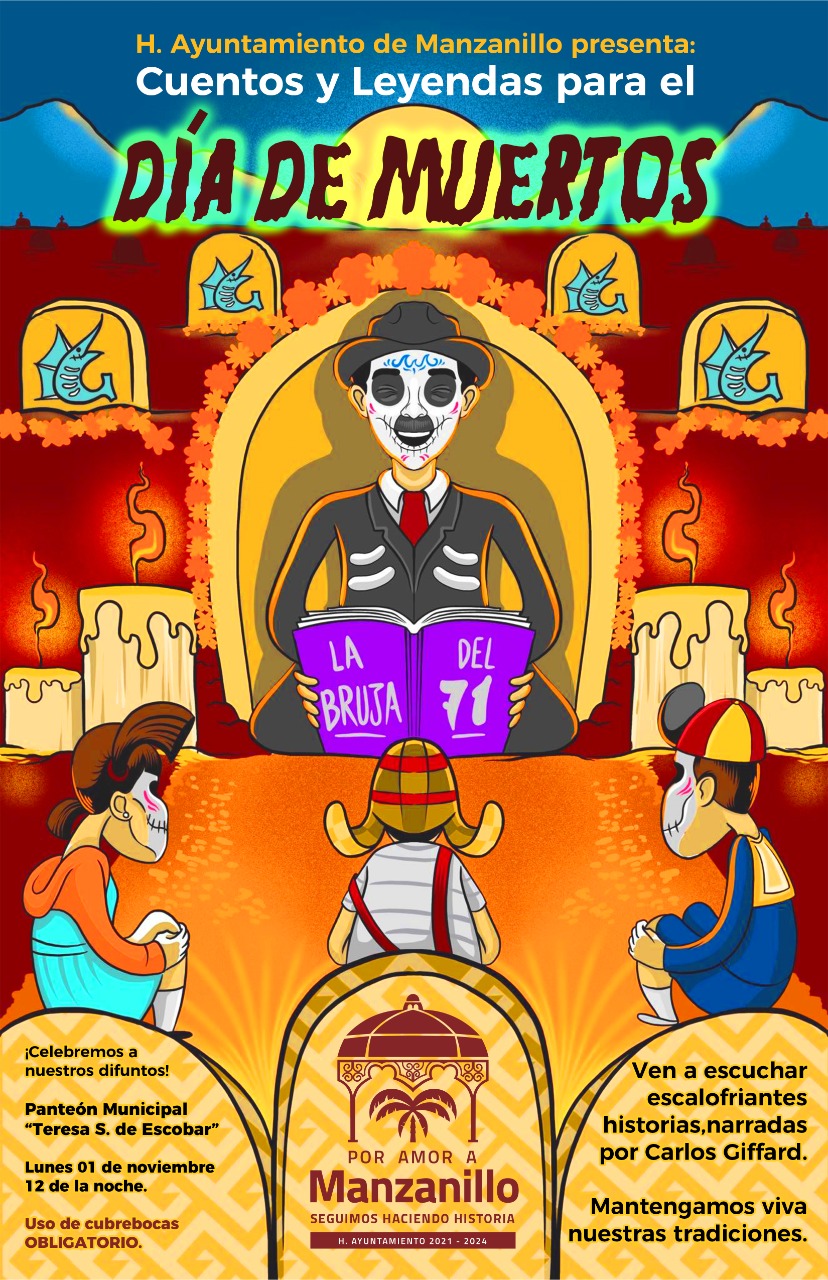 Por tal motivo el ayuntamiento de Manzanillo invita a vivir la experiencia de los Cuentos y Leyendas para el Día de Muertos, éste se va a desarrollar a las 12 de la noche de este lunes 01 de noviembre en el panteón municipal Teresa S. Escobar, ¡atrévete a escuchar escalofriantes historias! En voz de Carlos Giffard, quien mantendrá vivas las tradiciones ancestrales y más queridas de los manzanillenses.