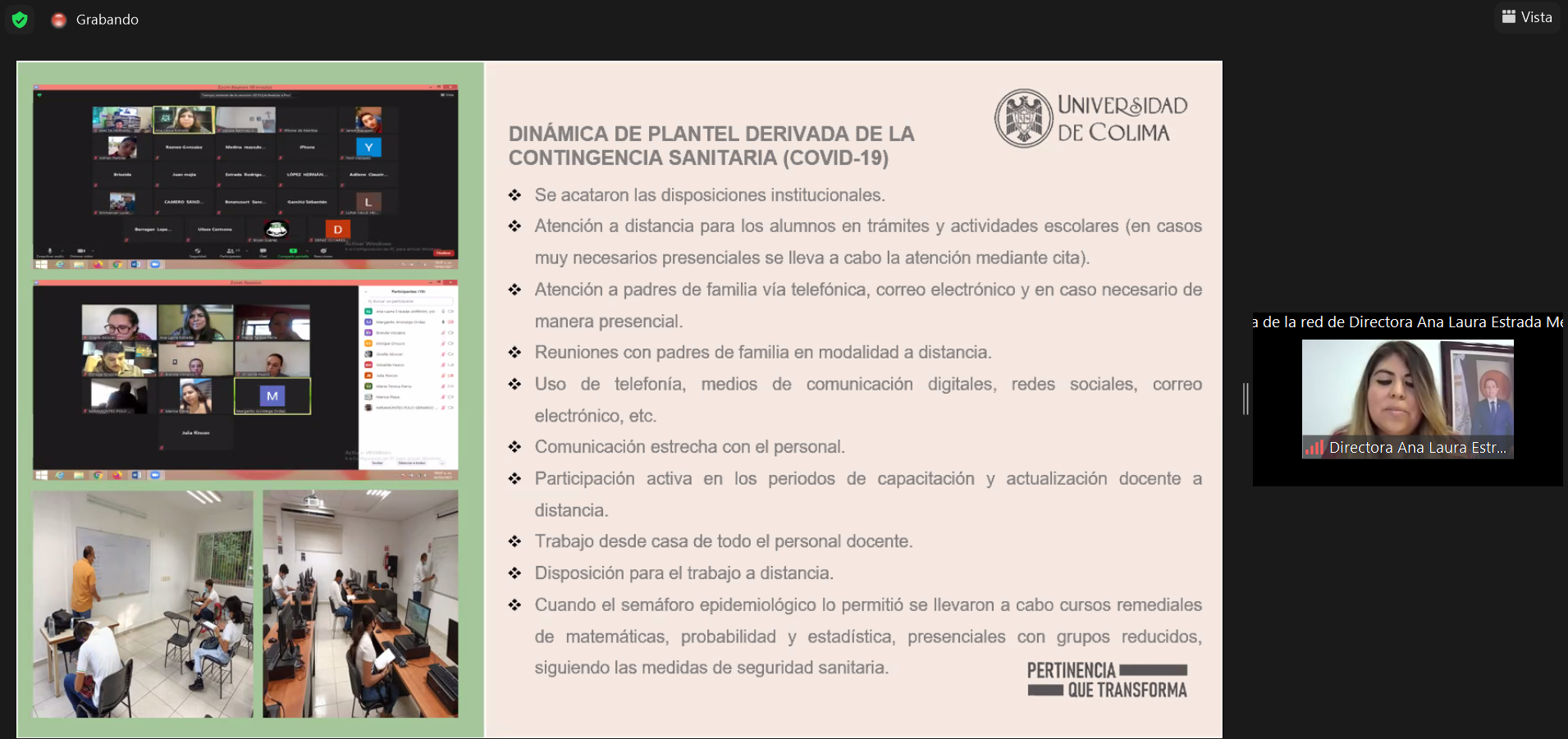 Tocó el turno de conocer las actividades generadas en los últimos doce meses por parte de la comunidad académica del Bachillerato 14, ubicado en El Colomo, Manzanillo. Su directora, Laura Estrada Medina, rindió su informe de modo virtual ante el consejo técnico del plantel, estudiantes, personal docente, administrativo, público en general y autoridades universitarias.