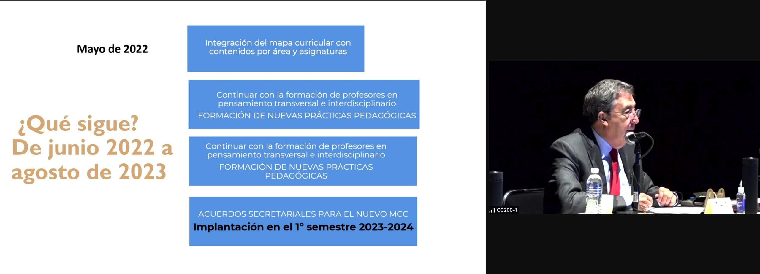 Esta transformación será de manera paulatina y sostenida, explicó, a través de un proceso que surja de los docentes, para lo cual se ha generado un amplia y abierta discusión que involucra a miles de docentes desde 2019: “Este año formalizamos la realización de un seminario con cuatro sesiones de trabajo en cada plantel, donde hemos pedido a los docentes que nos transfieran sus conclusiones y sus recomendaciones para arreglar esta propuesta general. Debemos involucrar fundamentalmente a docentes y a estudiantes”, aseguró.