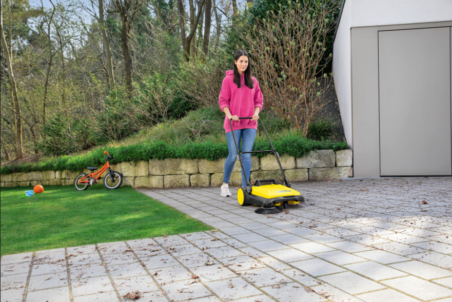 Una vez limpias las herramientas de jardín y los muebles, es el turno de las grandes superficies. En aceras y patios interiores, antes del trabajo con la limpiadora de alta presión, se utiliza la barredora para capturar la suciedad suelta. El proceso es cinco veces más rápido que con cepillos y barredora y, además, protege la espalda debido a que el agua sale por una pequeña boquilla, como un chorro concentrado, que permite un elevado efecto de limpieza sin la necesidad de ejercer mayor fuerza en la actividad.