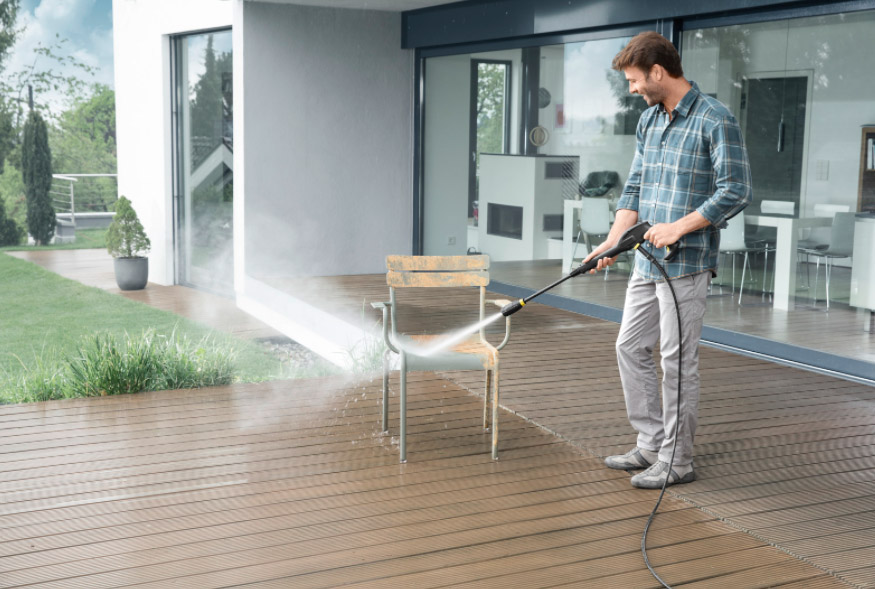 Para ello, pueden limpiarse rápidamente y sin esfuerzo con una limpiadora de alta presión, al sustituir a los cepillos manuales y cubos de agua. El potente chorro de agua desprende la suciedad y a continuación la elimina. Del mismo modo, también pueden limpiarse macetas y jardineras, así como mobiliario de jardín.