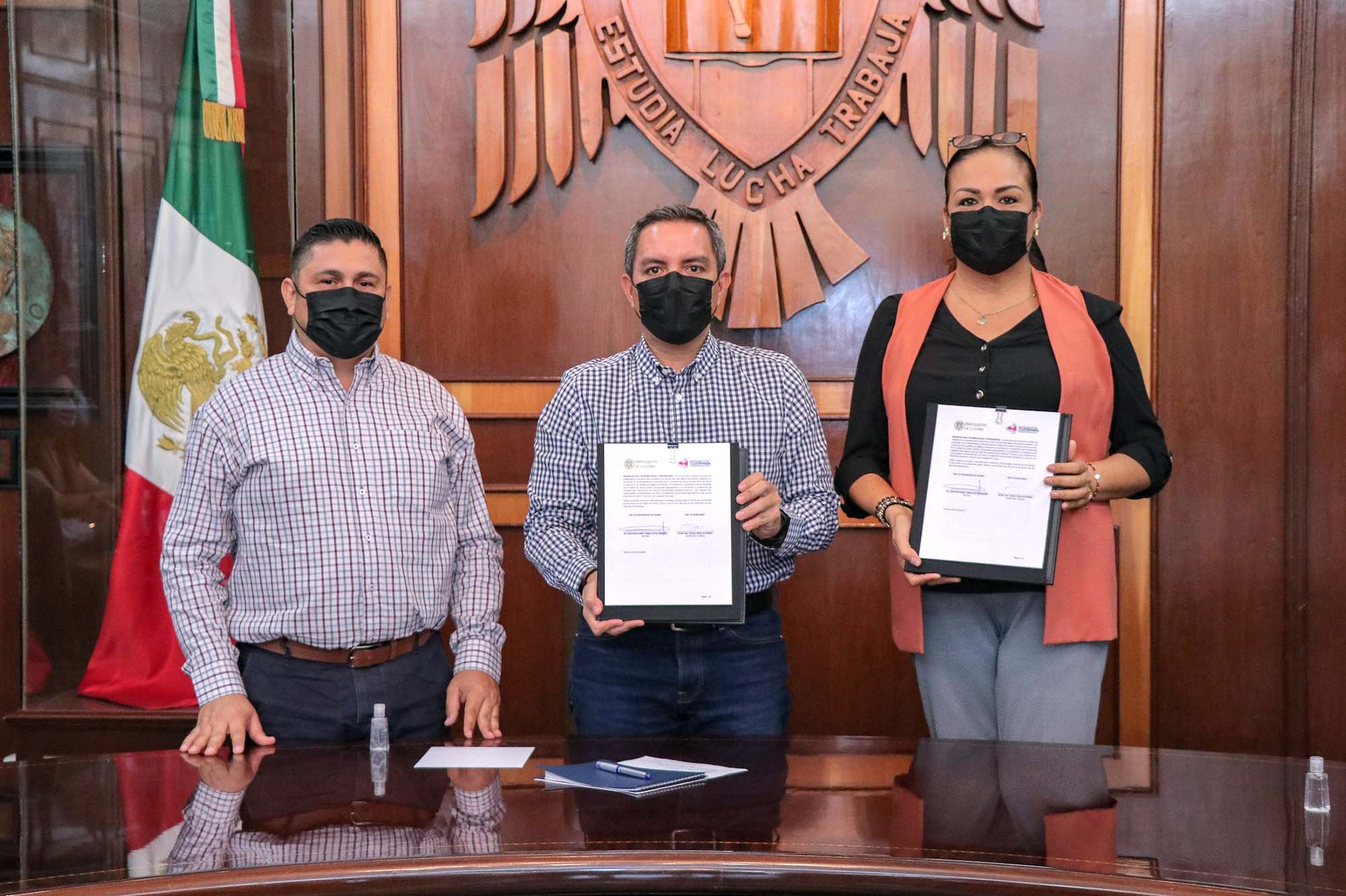 Para establecer las bases de apoyo mutuo que contribuyan a la formación académica y profesional de ambos organismos, la mañana de este viernes la Secretaría Ejecutiva del Sistema Anticorrupción del Estado de Colima, representada por su secretaria técnica, María Teresa Trejo Gutiérrez y la Universidad de Colima, con la representación del rector Christian Jorge Torres Ortiz Zermeño, firmaron un convenio de colaboración, de manera presencial, en la sala de juntas de rectoría.