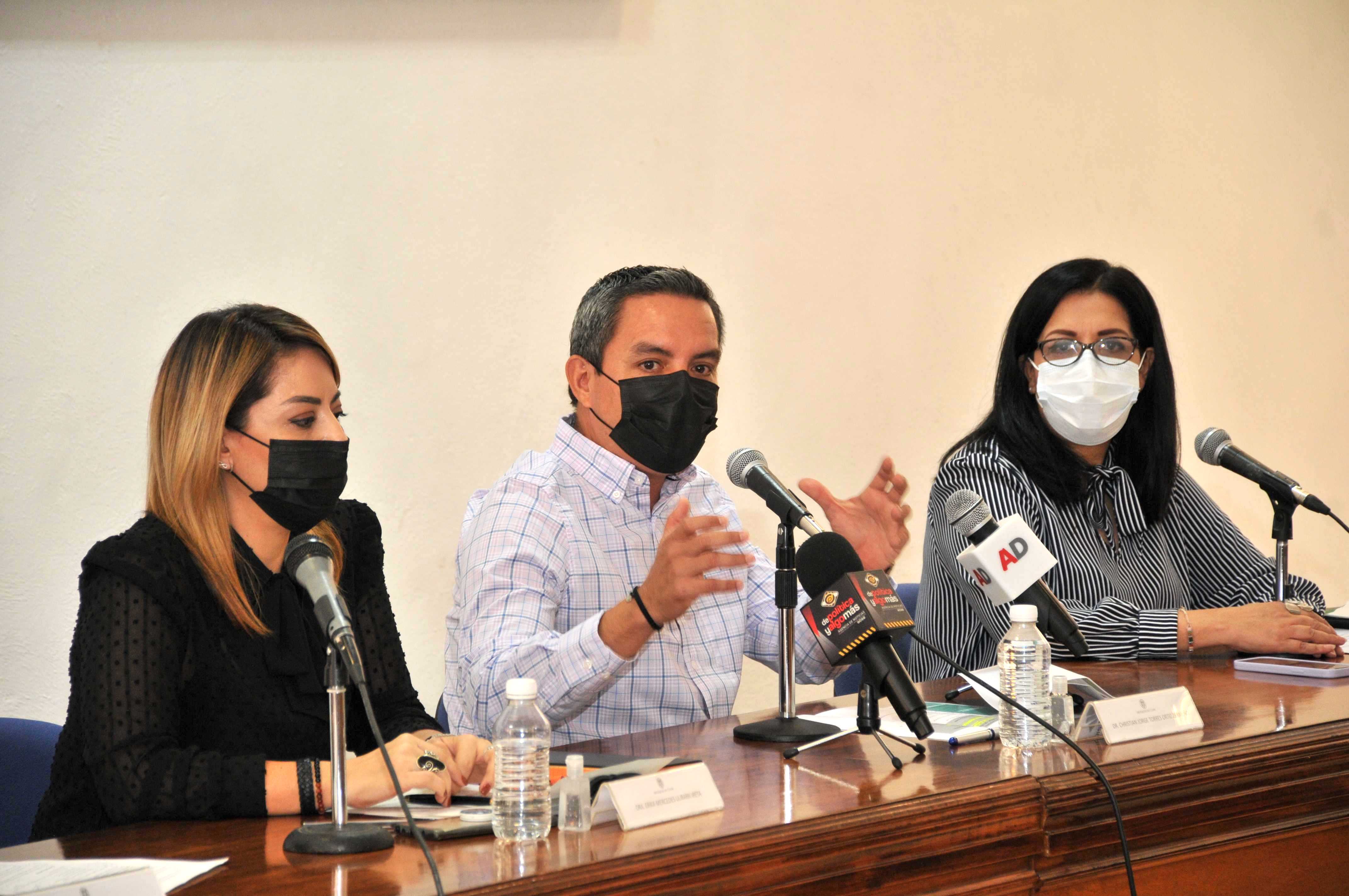 En la rueda de prensa acompañaron al rector en el presidium Érika Ulibarri Ireta, coordinadora general Administrativa y Financiera; Vianey Amezcua Barajas, coordinadora general de Comunicación Social y Ana Lilia Moreno Osegueda, directora general de Servicios Universitarios.