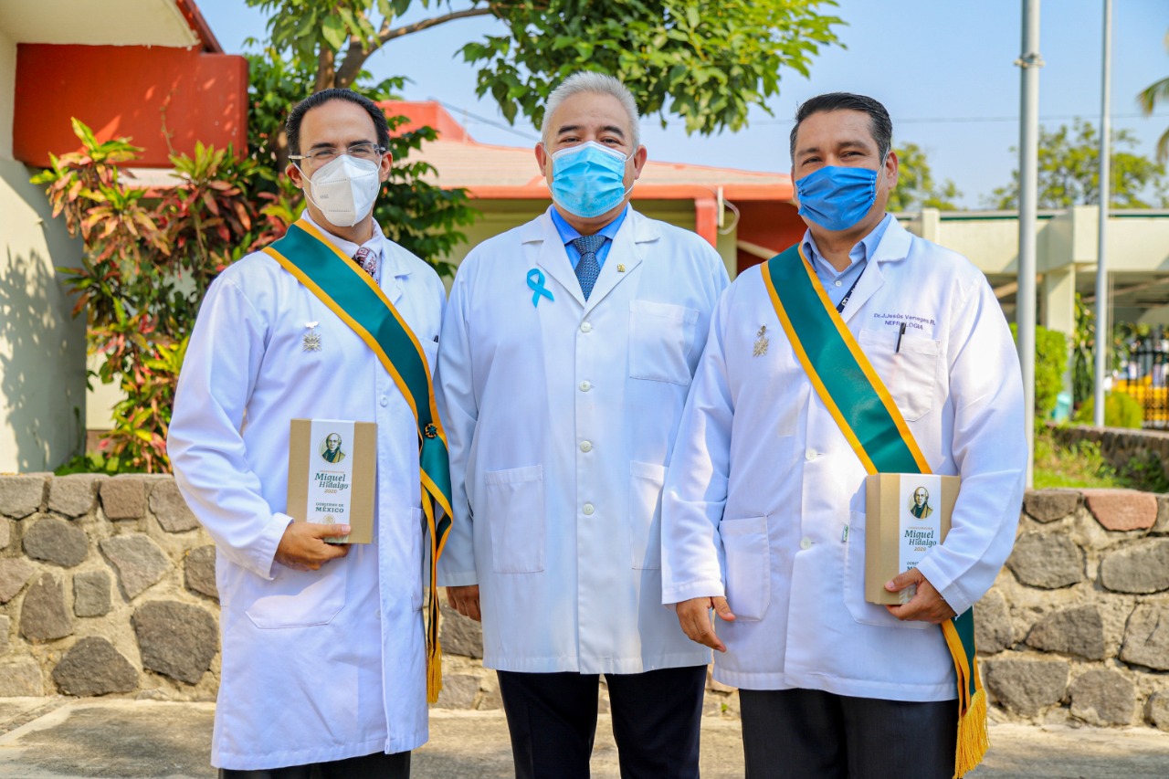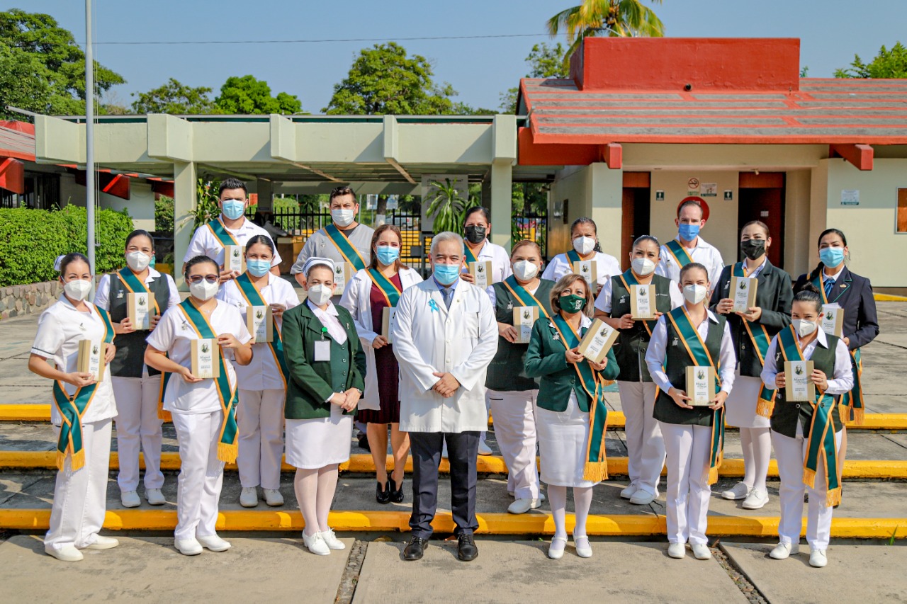 El Instituto Mexicano del Seguro Social (IMSS) en Colima reconoció con la Condecoración Miguel Hidalgo en Grado Banda a personal de salud que labora en dicha delegación por sus méritos distinguidos en la atención frente a la emergencia sanitaria provocada por el virus SARS-CoV-2.