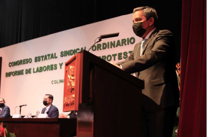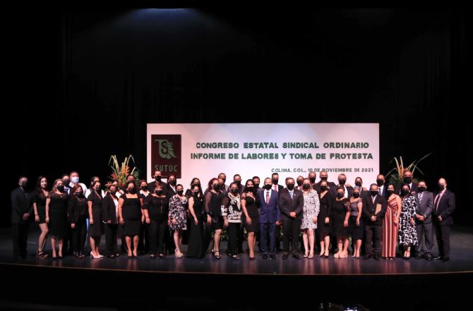 Luego de presenciar el acto en el que el nuevo Comité Ejecutivo Central del Sindicato Único de Trabajadores de la Universidad de Colima (SUTUC) rindió protesta para el periodo 2021-2025 y de escuchar el informe de labores de Luis Enrique Zamorano Manríquez, secretario general de este organismo universitario, el rector de la Universidad de Colima, Christian Jorge Torres Ortiz Zermeño se dijo seguro de que “con la suma de voluntades y en torno a la unidad, lograremos generar las condiciones para consolidar la educación como uno de los factores determinantes para satisfacer las nuevas necesidades sociales de la región”.