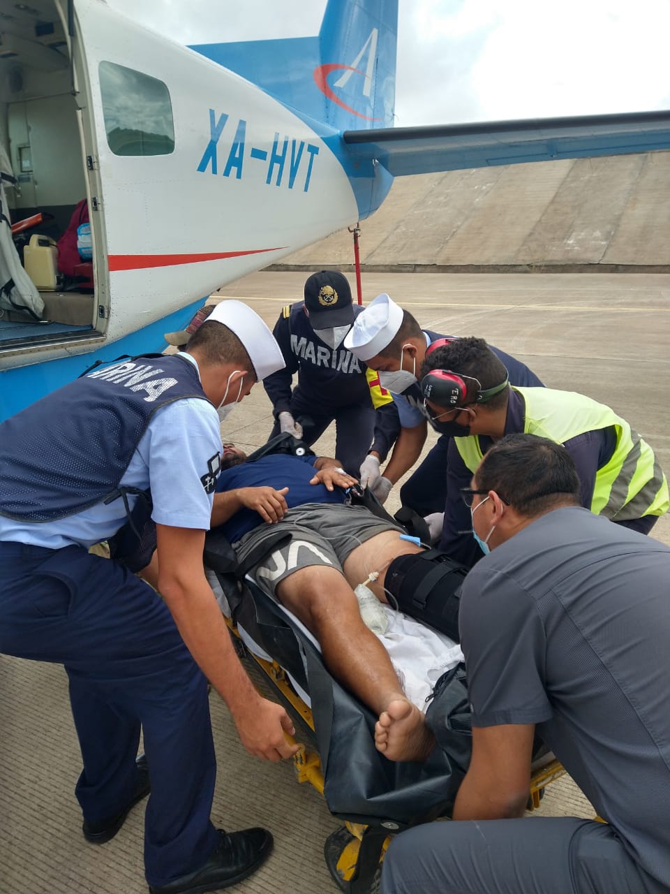 Al llegar al lugar en el que se requería el apoyo, personal naval efectuó la evacuación médica vía área de tres personas de sexo masculino y posteriormente fueron trasladados a las instalaciones del Sector Naval de Isla Socorro, donde previamente se había coordinado una ambulancia aérea que ya los esperaba para ser trasladados a un hospital de la ciudad de Mazatlán, Sinaloa, para recibir atención médica especializada.