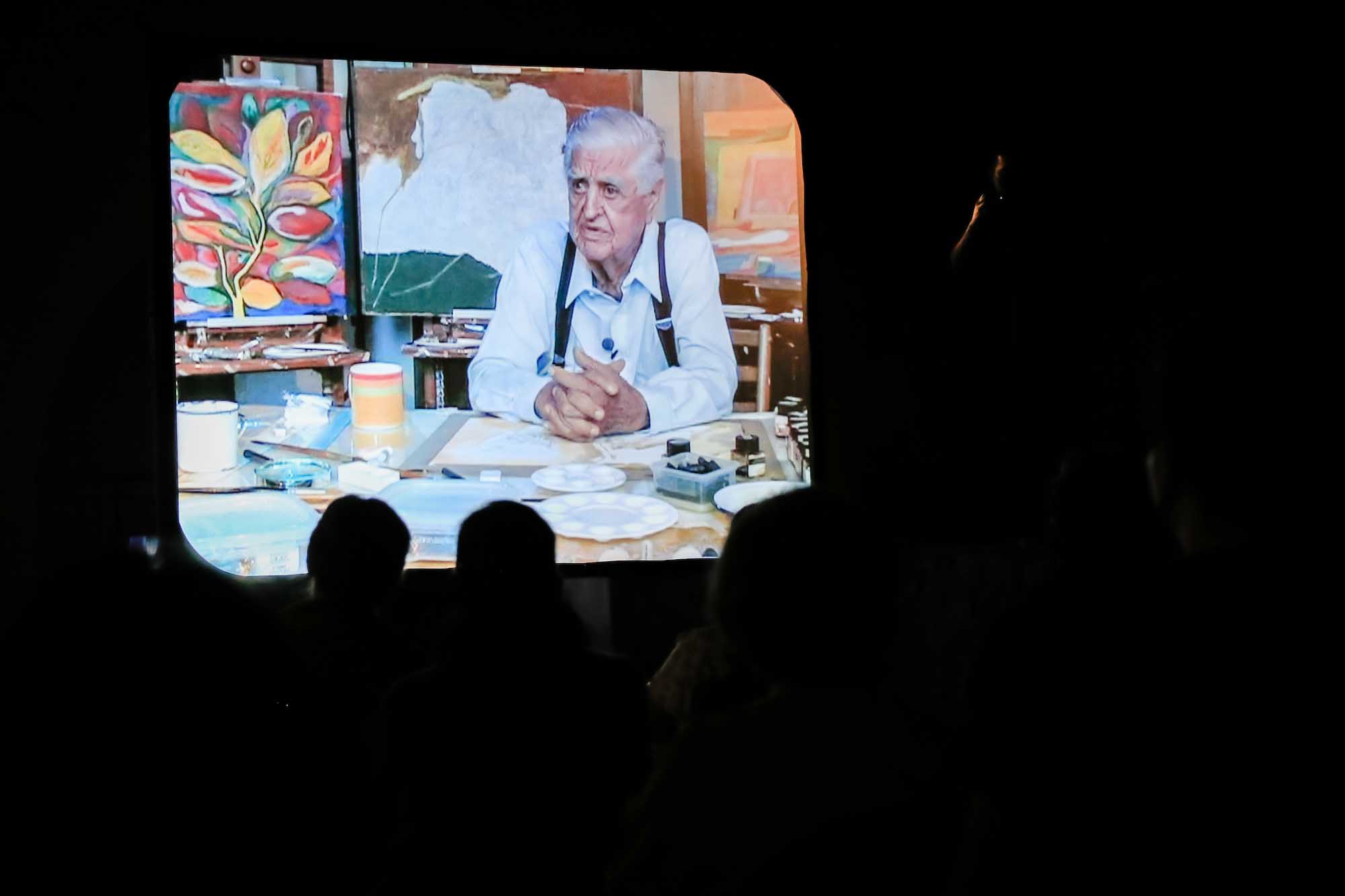 Una vez terminada la proyección, Bogart Rodríguez comentó con los asistentes su experiencia en la realización de este documental, que le tomó casi tres años de trabajo. Sobre el artista dijo: “Frente a la cámara era serio, formal, pero fuera de cámara era un gran conversador. Los días de grabación preparábamos todo y, de repente, me decía (apagado todo) ‘vamos a platicar’. Me di cuenta de que fuera de las formalidades era un gran conversador, y entonces hacía como que apagábamos la cámara para rescatar al gran conversador, las risas y anécdotas que narra el maestro”.