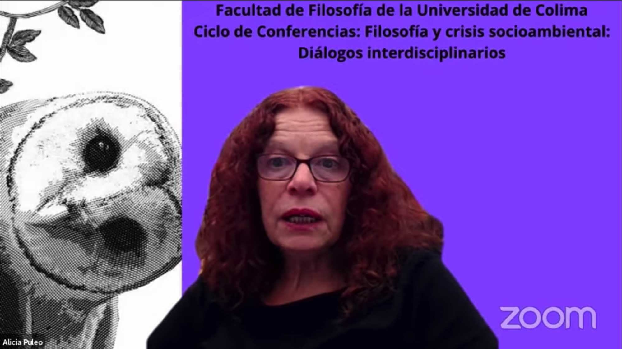 En su conferencia, transmitida por el canal de YouTube de la Facultad de Filosofía (https://www.youtube.com/channel/UCa_rEGXodVF3ffC0CsEV6MQ/featured), la Dra. Alicia Puleo señaló que “la filosofía nos ha ayudado a lo largo de la historia a ordenar el mundo y el pensamiento. En momentos como éste, por ejemplo, en el que estamos viviendo una crisis no sólo sanitaria sino ecológica, dijo, “la filosofía es indispensable para ayudarnos a pensar en otro mundo posible, en otra forma de organizarnos y otra forma de ser felices, que no coincida con ésta que ya es insostenible, por lo que hoy más que nunca la filosofía es necesaria como pensamiento crítico”.